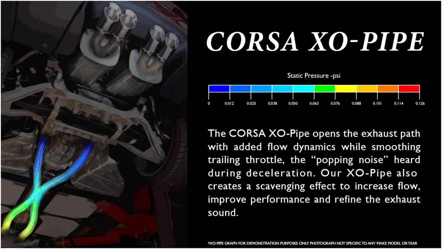 CORSA's Patented Reflective Sound Cancellation (RSC) Technology allows acoustic engineers to create a drone free exhaust sound, styled specifically to fit the personality of your vehicle. Each system is designed to increase vehicle performance, deliver an AGGRESSIVE SOUND under acceleration and a DRONE-FREE EXPERIENCE during cruise. Performance gains are not affected by sound choice.