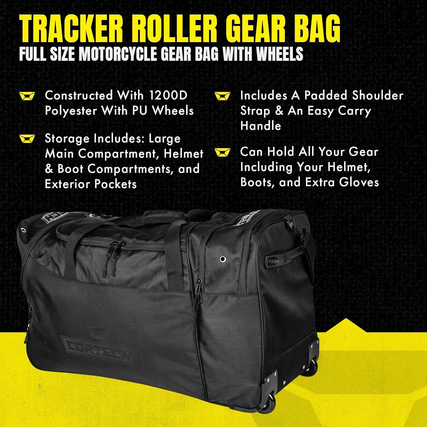 • Spacious Main Compartment: Features a large central storage area plus dedicated helmet and boot compartments to keep gear organized and protected.