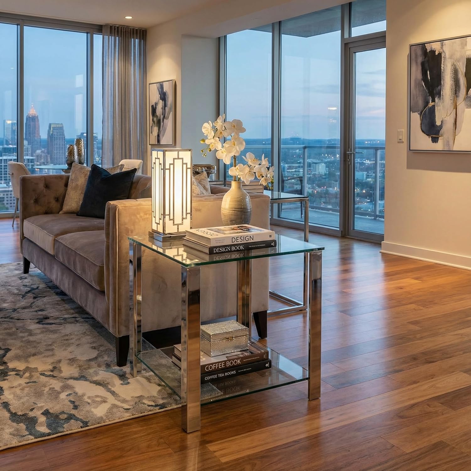 Enhance your living room decor with the Cortesi Home Melissa Double Shelf Glass End Table. The stainless steel frame provides the durability you need, while giving the contemporary look you want. It features 2 tiers of glass shelves that provide plenty of space to display collectibles, books, or be used as additional storage.