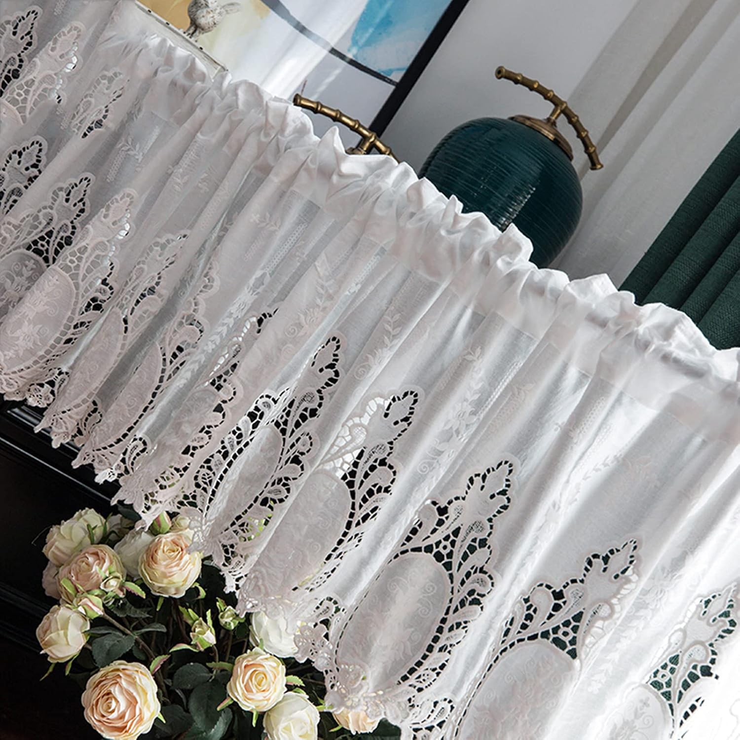 ▶▶▶ Elegant hollow out embroidered textured fabric, very soft and cozy. Airy and light, it gives every room a friendly atmosphere. ▶▶▶ Let natural light into your room while maintaining privacy, it's the perfect kitchen curtain for the kitchen, cafe or any small window. ▶▶▶ There is a stick pocket on the top for easy installation. Available seperately. (Different sizes) ▶ Size: (length X width) 150X40cm, 150X50cm, 150X60cm, 150X70cm, 200X40cm, 200X50cm, 200X60cm, 200X70cm, 250X40cm, 250X50cm, 250X60cm, 250X70cm (Please choose the size of the curtain carefully according to the size of your window. It is recommended to choose a size that is 1, 5 to 2 times wider than the window for better folds.) ▶ Specification Name: curtains and drapes material: 100% cotton Degree of shading: 40-70% ▶ Care instructions Machine wash up to 30 ° C, easy care. Iron at low temperature. Do not bleach. ▶ Notes 1. There might be some color difference due to a problem with the display. Please refer to the actual product color. 2. Due to manual measurement, please allow additional or less 1-3 cm errors. 3. If you have any questions, please contact us in good time. We will try our best to solve the problem for you.