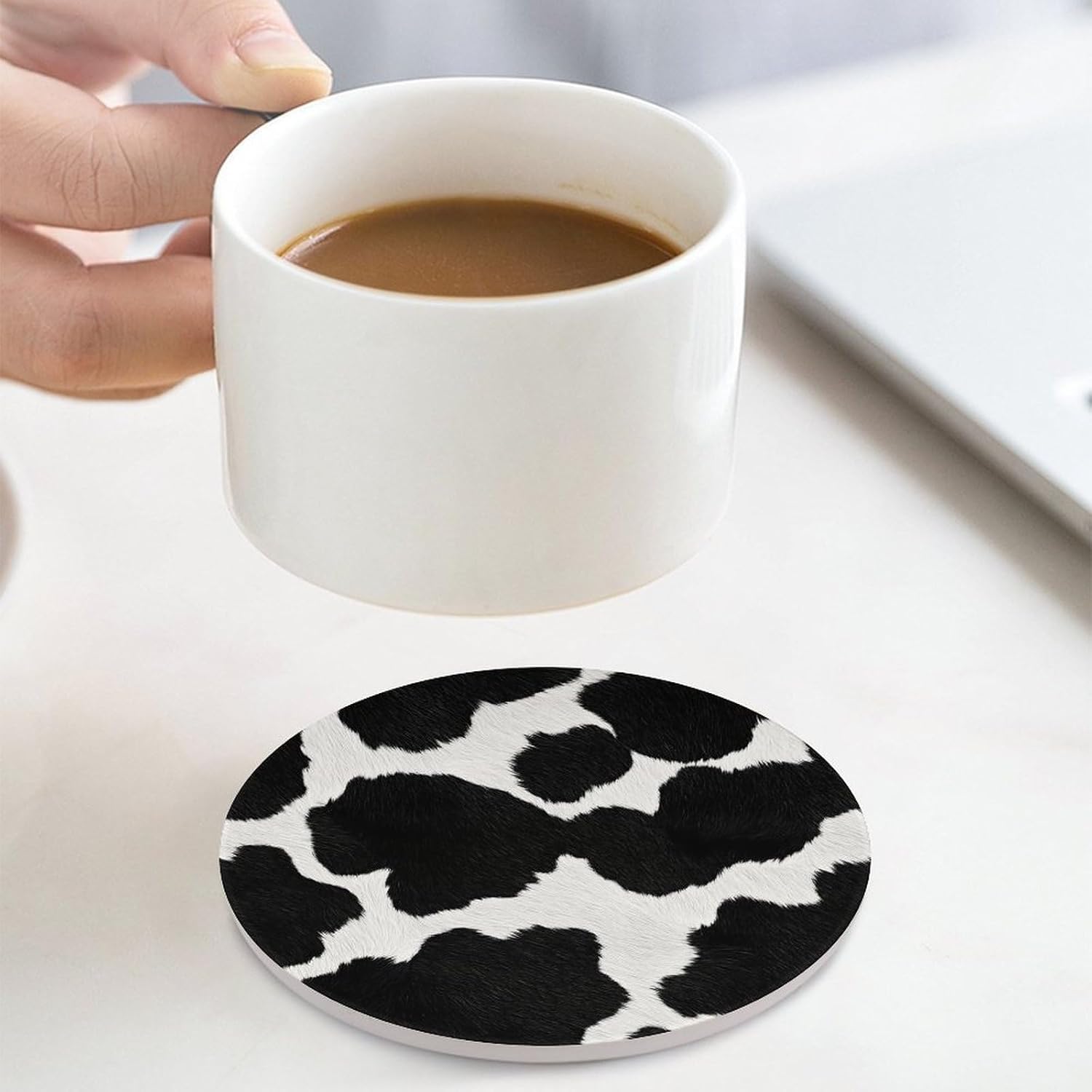 Cute Printed Round Drinks Absorbent Ceramic Coaster with Cork Base Suitable for Kinds of Mugs, Cups, Prevent Tabletop Wear And Scratches, and is Easy to Clean