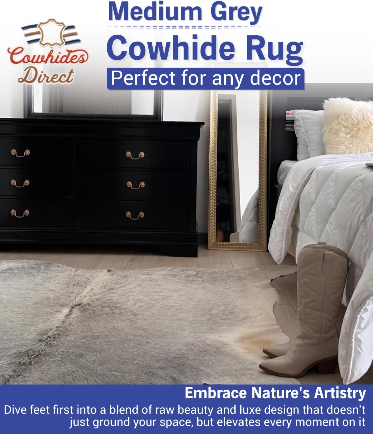 • VERSATILE DECOR: Add a touch of rustic charm to any room with our premium cowhide rugs. Ideal for living rooms, bedrooms, and even bathrooms, these rugs seamlessly blend with various interior designs.