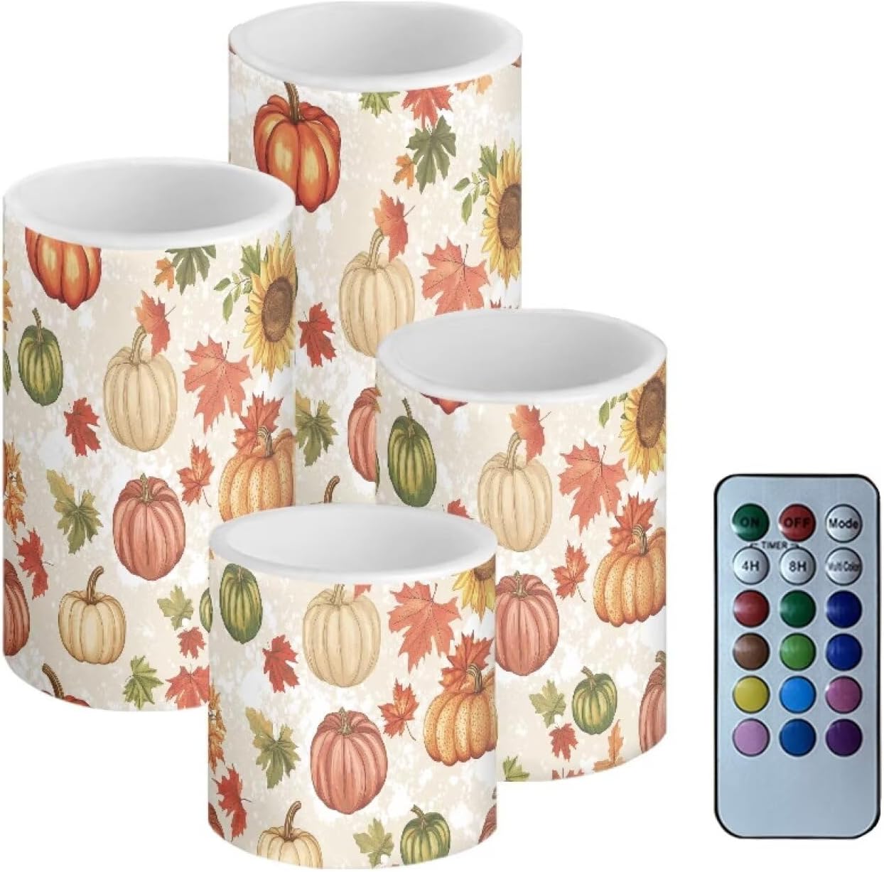 Candles Sets(not battery include) Material:Premium frosted plastic. Color: ivory color Candles comes in 4 different size: --Diameter 7.5cm/3inch Height 7.3cm/2.9inch --Diameter 7.5cm/3inch Height 9.7cm/3.8inch --Diameter 7.5cm/3inch Height 12cm/4.7inch --Diameter 7.5cm/3inch Height 14.5cm/5.7inch Features: --with remote control,12 colors for you choose,have 4-hour or 8-hour timing mode --warm yellow tealights with miniature flicker --turn on/ off manually. --battery operated by 3 x AAA batteries. (Batteries not Included) --these flameless candles set is long lasting,buy them once, enjoy them for years to come! --suit for any spaces,any weather,indoor or outdoor. --4 pieces battery candles,create a romantic atmosphere and sparks interest for wedding,parties,home,birthday,festival and other occasions. without the worry of fire hazard, wax melting or allergic scent, warmer and peaceful atmosphere will make you enjoy your event.You will love it. Using Tips: 1.When the battery is too weak for normal power supply, your flameless candle will dim light, please turn off the candle and replace the battery. 2.Do not mix old or new batteries. 3.when not in use for a long time, please remove the battery from the LED candle. Note: 1.Due to the different camera or lighting environment, please allow a little chromatic aberration. 2.Due to different measurement methods, please allow an error of 1-3mm. Thank you! 3.Thank you for your business! If you have any questions, please don't hesitate to contact us directly.