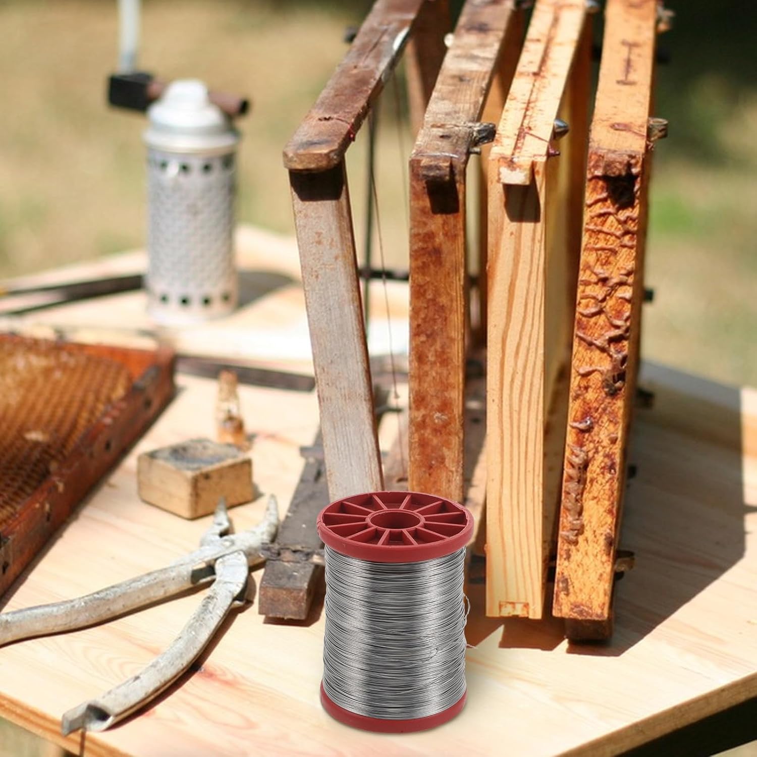 DescriptionSpecially designed as a wax frame securing wire, this versatile beekeeping equipment integrates seamlessly into your hive setup. Its robust stainless steel composition delivers consistent performance, helping beekeepers maintain healthy, productive colonies while providing the necessary stability for wax frames in diverse beehive environments.Features-Color:Red-Material:stainless steel-Size:8.50X6.50X6.50cm/3.35X2.56X2.56in-Total Length: 480M-Dependable Frame Installation: This bee hive frame wire for beekeeping ensures secure attachment of wax foundations, supporting robust colony development-Stainless steel Material: Stainless steel comb wire is engineered for resilience and prolonged use, providing the durability necessary for hive maintenance in variable conditions-Efficient Hive Assembly: With the hive tool frame wire, quickly and securely install or repair frames, optimizing your beekeeping workflow and maximizing productivity during busy seasons-Consistent Performance: From initial setup to ongoing repairs, this beekeeping hive wire offers unwavering support and reliability, making it a staple in your beekeeping hive parts kit-Broad Usability: Whether for new installations or repairs, this wire for wax foundation can be adapted to all standard frame sizes, suiting beekeeping supplies wire demands for any apiary