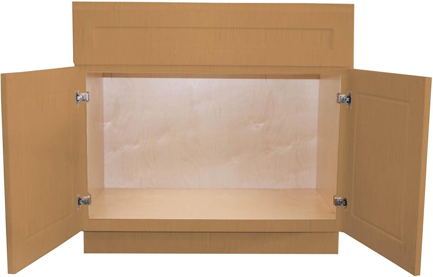 The Craftline RTA Bathroom Sink Base Cabinet brings timeless design and dependable quality to your bathroom. Crafted from all-wood materials, this ready-to-assemble (RTA) vanity offers long-lasting durability with face-framed construction and full overlay shaker doors. The warm husk finish adds a rich, natural touch that suits a variety of interior styles. Soft-close hinges provide smooth and quiet door operation, while the un-drilled door fronts allow for fully customized hardware placement. Designed with functionality in mind, the Craftline sink base cabinet for bathroom is built to accommodate standard plumbing but will require holes to be drilled during installation. Design Insights: Measurements are listed as (Width x Depth x Height). Product styles, availability, and construction may vary due to material availability and the nature of wood. Since each tree is unique, cabinets may differ in color, texture, and grain. Variations in color, grain patterns, mineral streaks, pinholes, and knots are natural characteristics of wood and are not considered defects. Specifications Cabinet knobs, pulls, mounting screws, and wood glue are sold separately Drawer box: 1/2 inch plywood, clear finish interior, matching finish exterior Shelf: 3/4 inch plywood half depth Door material: MDF Hinge: DTC soft close Color: Husk Warranty: 1 Year Limited Warranty