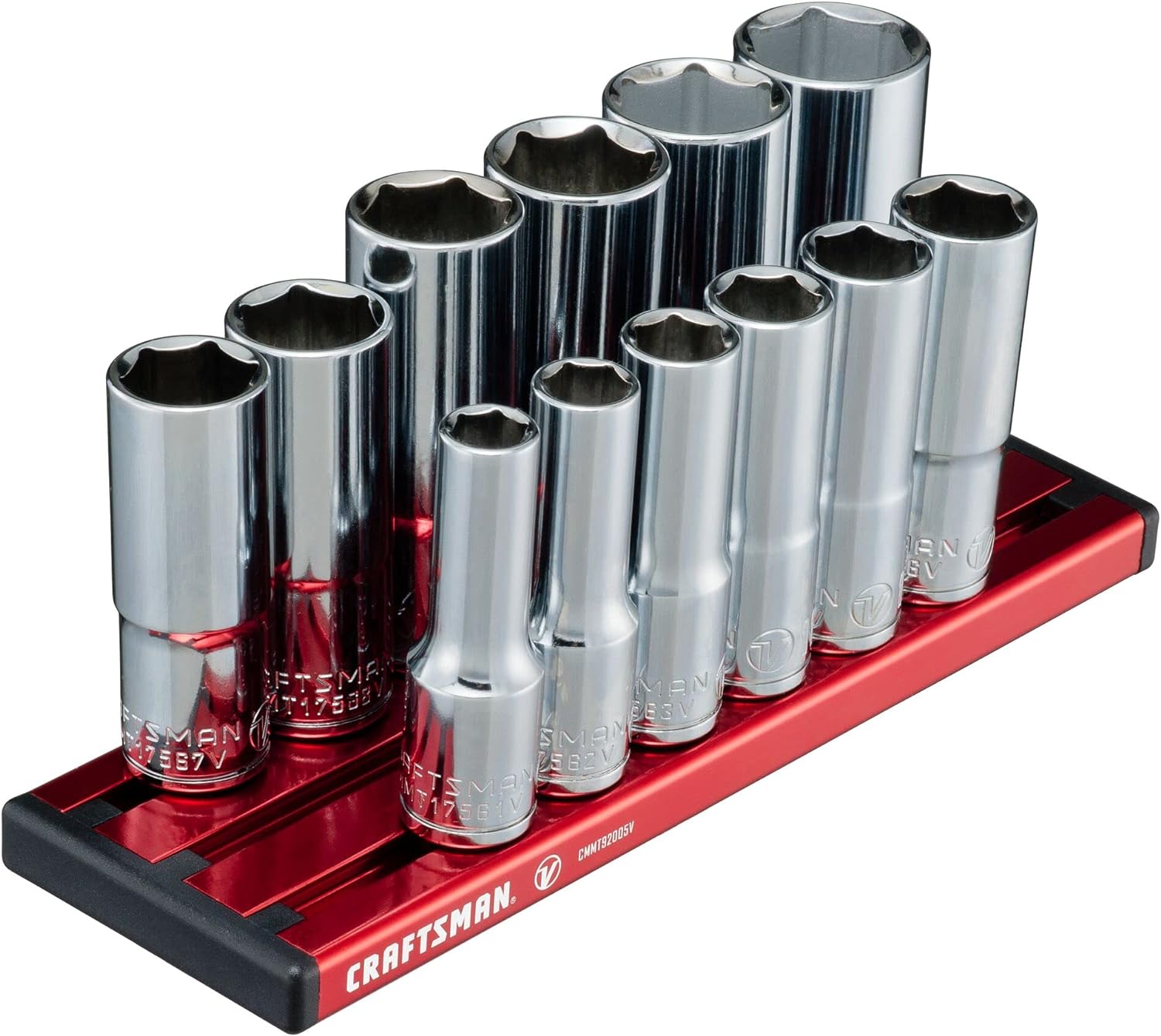 | Included Components | (12) 3/8 DR 6PT Shallow SKT: 1/4 in. 5/16 in. 11/32 in. 3/8 in. 7/16 in. 1/2 in. 9/16 in. 5/8 in. 11/16 in. 3/4 in. 13/16 in. 7/8 in. | (1) 6 in. Black Rail 3/8 DR W 12 Nubs |