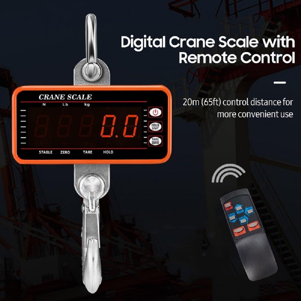 This digital crane scale is portable, but its load capacity up to 500kg/1000kg/1500kg (optional) is beyond your imagination. With a clear LED screen and changeable units (kg/lb/N), it is easy to read and can meet various needs. It is also equipped with a remote control, which is more convenient to use. All in all, this versatile crane scale is suitable for food/steel industries, construction sites, outdoor work, etc.Specification:Capacity: 500kg/1000kg/1500kg (optional)color is orangeMaterial: aluminum alloy + steelmaximum. Capacity: 500 kg/1102 lbs; 1000 kg/2204 lbs; 1500 kg/3306 lbsAccuracy: 200g (500kg); 500g (1000kg, 1500kg)Unit switching: N/ lb/ kgRemote control distance: 20m/65ftCrane scale batteries: 4 AA batteriesRemote control battery: 2 AAA batteriesItem size: 28.5 * 14.5 * 4 cm/11.22 * 5.71 * 1.57 inchesItem weight (without batteries): 1300g / 2.87lbspacking list:1 * digital crane scale1 * remote control4 AA batteries2 x AAA batteries1 * User Manual (English)