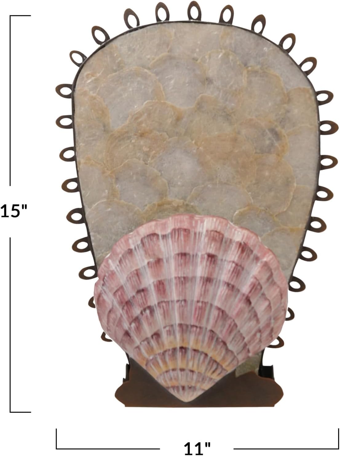 Add the Metal Wall Sconce Taper Candle Holder with Resin Shell to interiors for a refined blend of coastal artistry and functional design. An arched metal frame showcases resin shell detailing in multicolor tones, creating a decorative accent that radiates seaside charm. Perfect for Vintage, Boho, Coastal, Farmhouse, and French Country interiors, it enhances entryways, living rooms, or dining areas with warm illumination and sculptural appeal. Use it to elevate gatherings or everyday décor with ocean-inspired elegance. Made of durable metal with polyresin accents, it reflects artisan craftsmanship and enduring quality. Measures 11 inches in length x 4 inches in width x 15 inches in height, offering statement wall placement across a variety of settings. Illuminate interiors with this captivating wall sconce that merges tradition, design, and timeless coastal appeal.