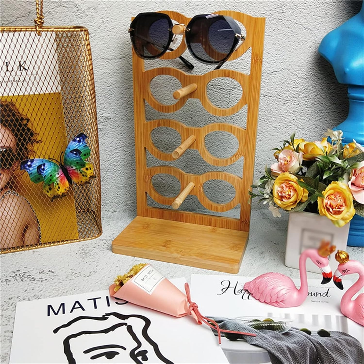 Product Name:Glasses Stand Product Size:3-Tier:18*10.3*23.6cm,4-Tier:18*10.3*31cm Product Packaging:1*Glasses Stand Prompt: 1.Please check the size and color before buying. 2. Except for the glasses stand in the picture, no other items are included. 3.Please note that different monitors may cause slight color differences, please understand. 4.Due to manual measurement, a small amount of error will occur. Please refer to the actual product, thank you. 5.Our shop has many styles and colors, you can check it in my shop. 6.Welcome your sharing and feedback so that we can provide you with better products and services. Great sunglasses organizer for the bedroom or dessert table to organize and display your sunglasses, glasses and other accessories.
