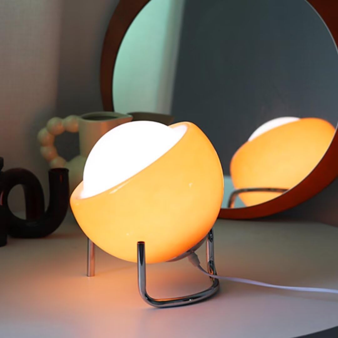 🍊FEATURES:▸High-quality texture tones, cleverly mixed to make the temperament of the space full of fashion style, the perfect combination of art, handicraft and nature, creating a relaxed, comfortable and dreamy atmosphere.▸The handmade glass lampshade is blown in one piece, with rich colors, smooth lines and surface, warm touch and uniform light transmission.▸High light-transmitting lampshade, even light transmission, softer light, durable, simple and luxurious light and shadow effects, spreading a high-quality life atmosphere.🍊PARAMETER:[Name]: Bauhaus Glass Table Lamp[Style]: Retro[Color]: Orange[Material]: Glass, iron.[Size]: 23cm/9.1inch (D), 25cm/9.9inch (H).[Lamp Holder]: G9[Power]: 5W[Light Color]: Warm Light[Switch]: Push button switch[Weight]: 1500g[Occasion]: Living room, bedroom, Restaurant, etc.🍊PACKAGE INCLUDED:1 x Bauhaus Glass Table Lamp