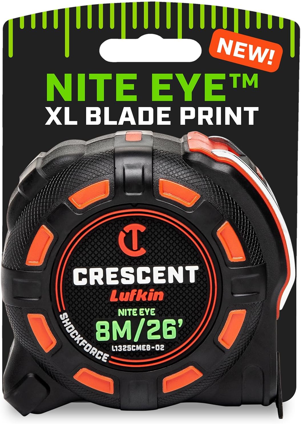 The Crescent SHOCKFORCE tape measures features a high-contrast tri-color NITE EYE blade for market-leading visibility, even in low light conditions. The all-new STABLEWING blade shape provides 16ft of stable reach, reduced blade roll-over, and a flatter profile for easier marking. The 3X clear-coated blade and mylar coating on the first 6 inches provides protection against wear and tear. These features are housed in an impact-resistant case that has been drop-tested 120 feet to withstand even the toughest of jobsite conditions.