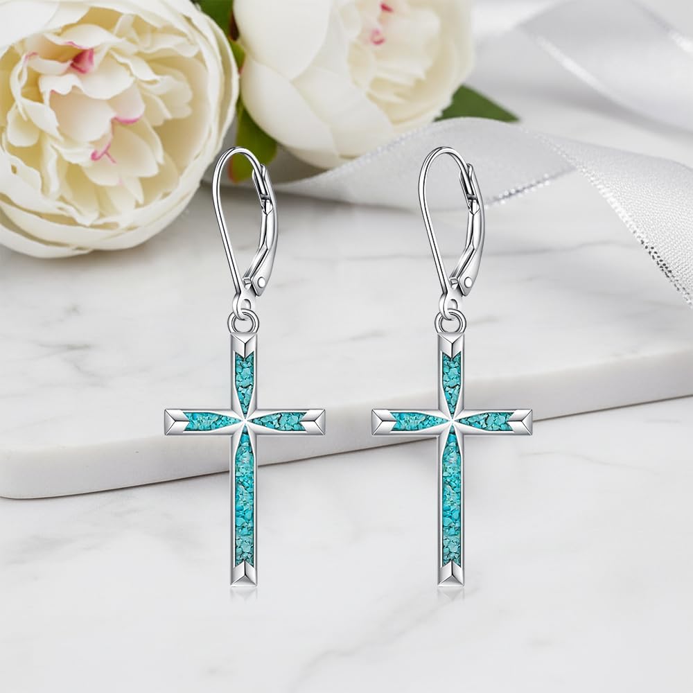 Cross Earrings for Women Sterling Silver Cross Earrings Dangle Turquoise Hanging Jewelry for Women Christmas Birthday Gifts