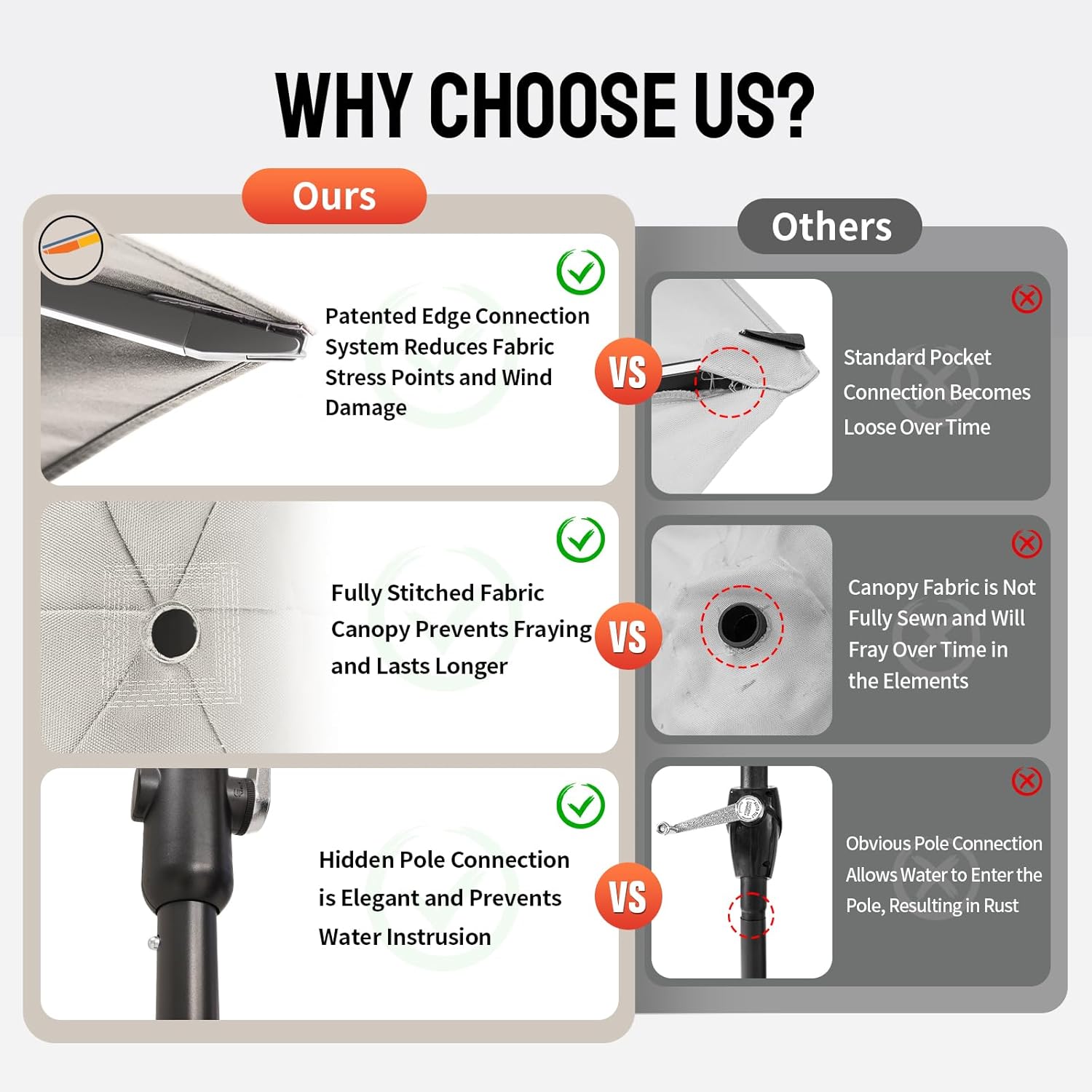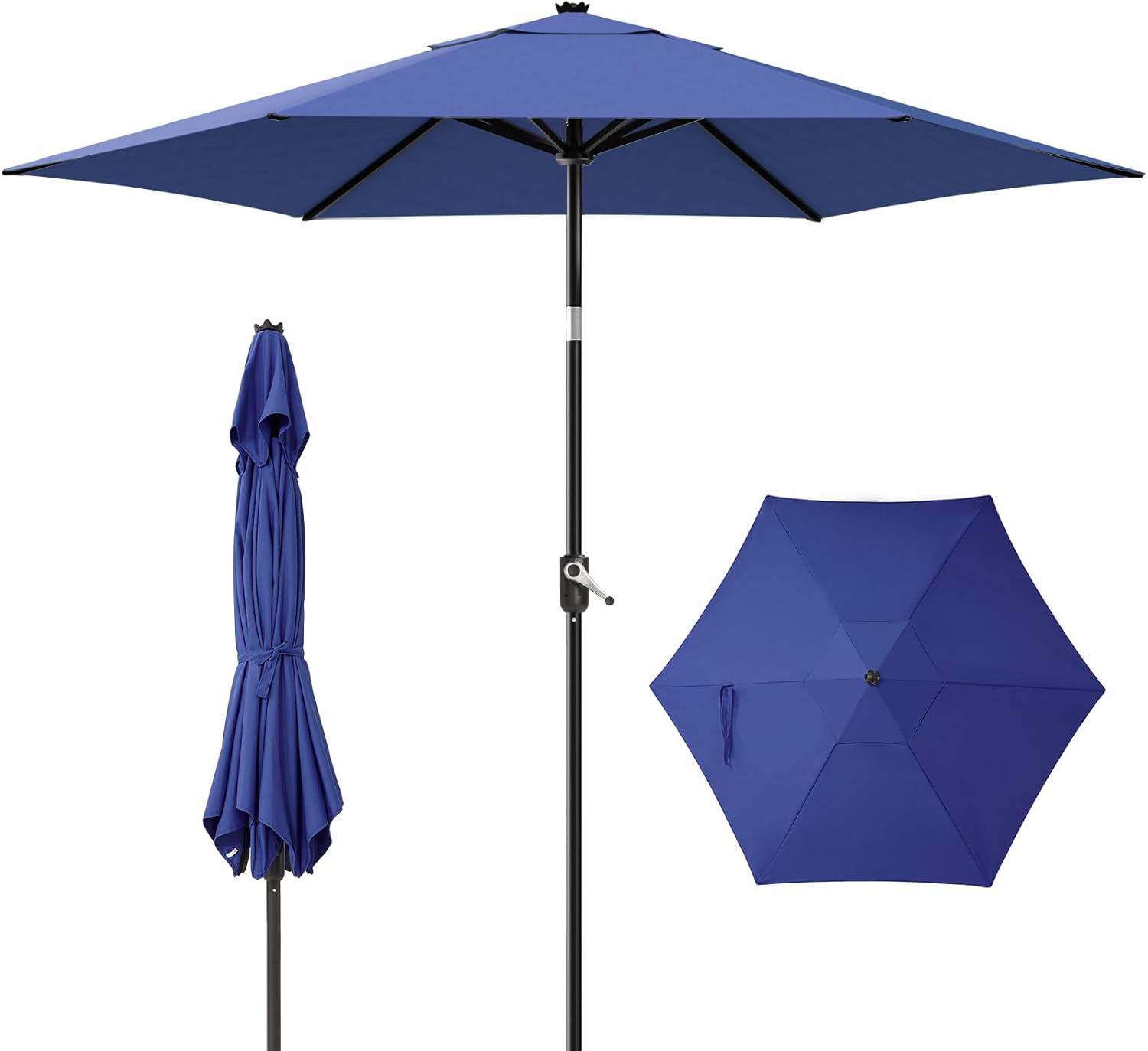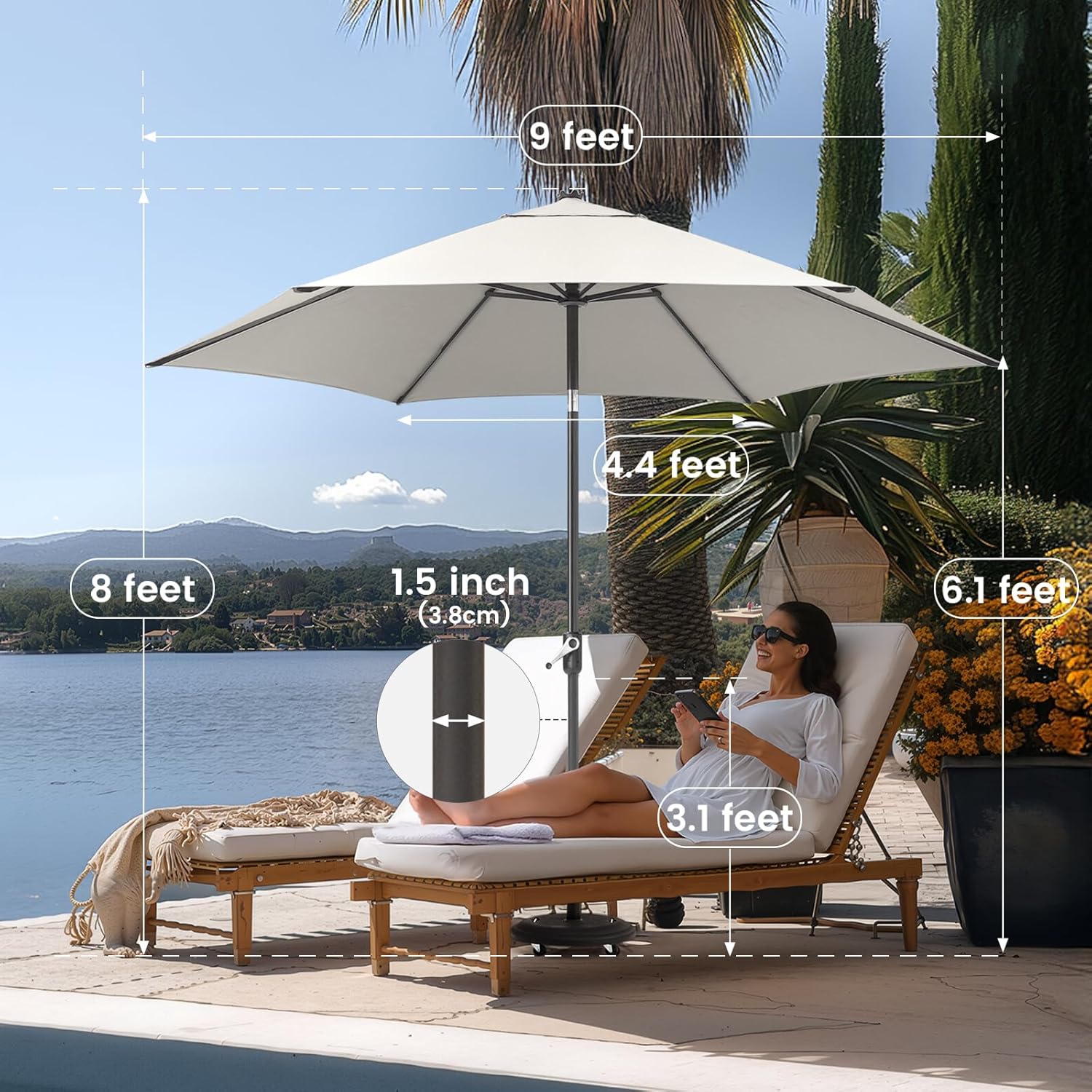 CROWN SHADES 9 Ft Patio Umbrella - Polyester Outdoor Umbrella with 30° Push Button Tilt, Patented Edge Connection Windproof Design for Patio, Pool, Garden & Table, UV Resistent