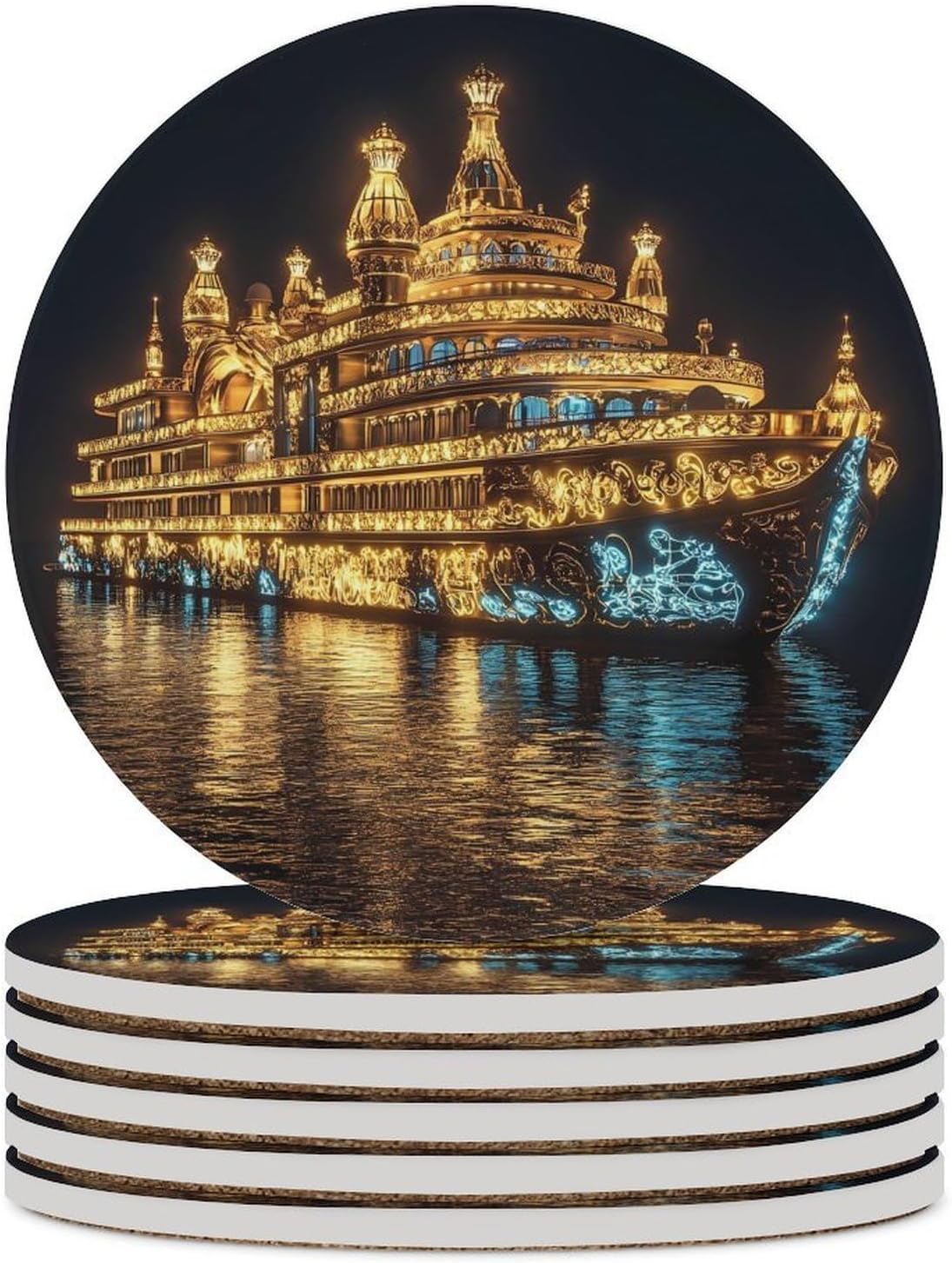Cute Printed Round Drinks Absorbent Ceramic Coaster with Cork Base Suitable for Kinds of Mugs, Cups, Prevent Tabletop Wear And Scratches, and is Easy to Clean