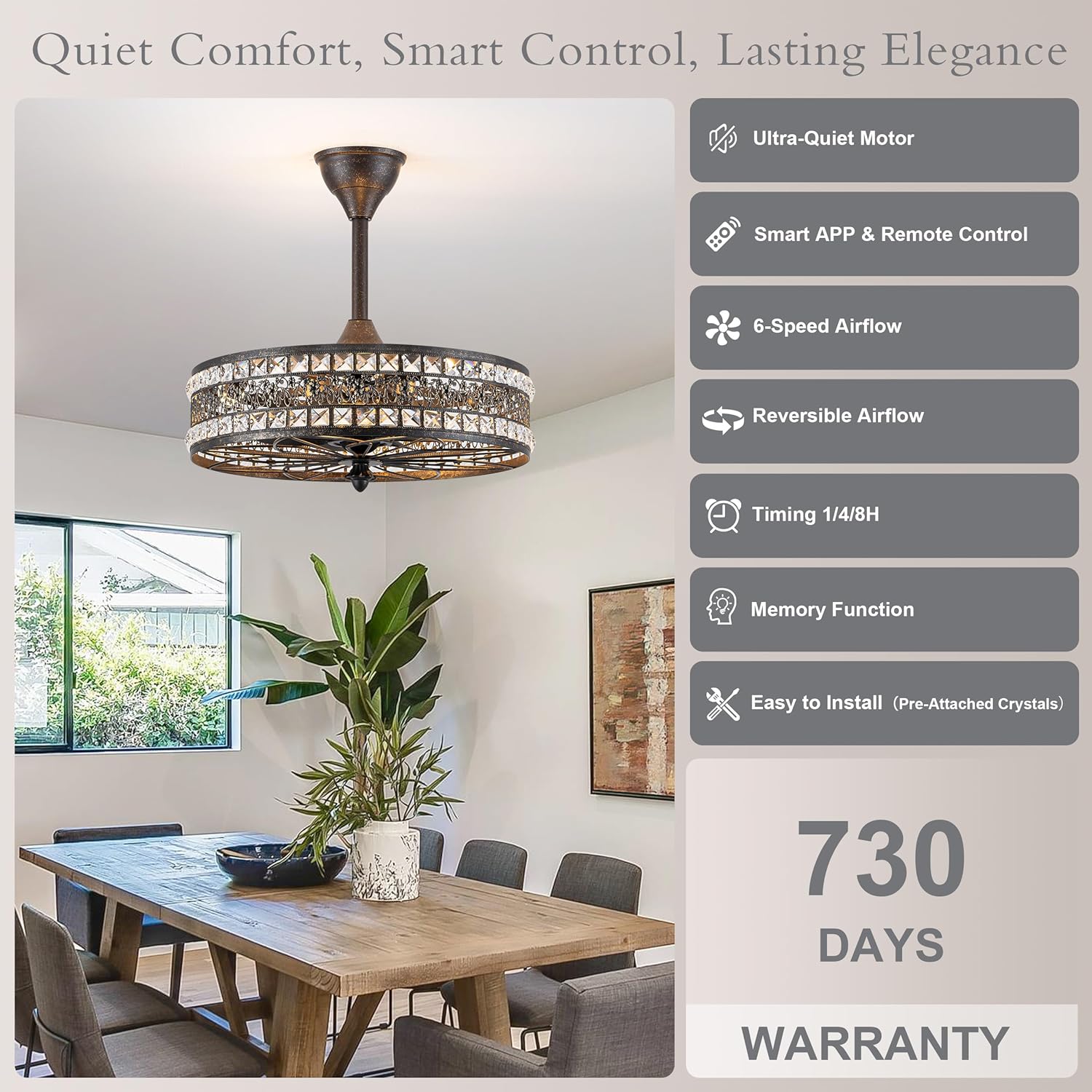 | Other Special Features of the Product | Antique Bronze Finish, Bladeless Design, Luxury Crystal, Smart App & Remote Control, Vintage |