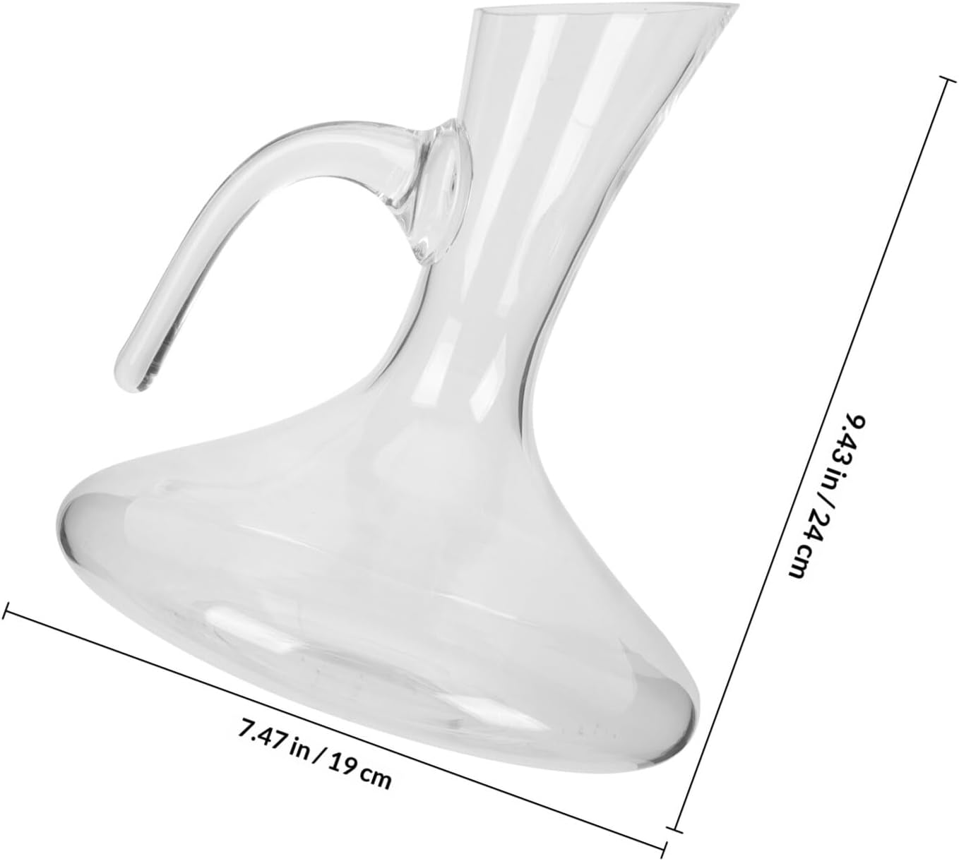 Package Include 1 x Wine Decanter with Handle Features - Material:Glass - Color: Transparent -Product Info:Red wine pourer - Size: 24.00X19.00X19.00cm/9.43X7.47X7.47in - Capacity: About 1800ML vintage decanter - Decanting the wine from the bottle to the decanter aerate the wine, its rich aroma and flavor drinks dispenser. - Adopting from good glass material, which is lightweight, with and good workmanship. - Creative bottle design, elegantly to your wine or kitchenware as decoration, adding a touch of bright color to the home. - The surface is bright and smooth, easy to clean, selected materials, comfortable to the touch, and does not hurt your hands. - The unique design of the glass decanter makes it easy to pour out liquids and can store whiskey, fresh juice, water and other drinks tequila decanter.Goods Descriptiontequila decanter This is a glass decanter made of , with reasonable design and practical functions, designed to help you better taste your wine, make it have a more comfortable and dense taste, and its best
