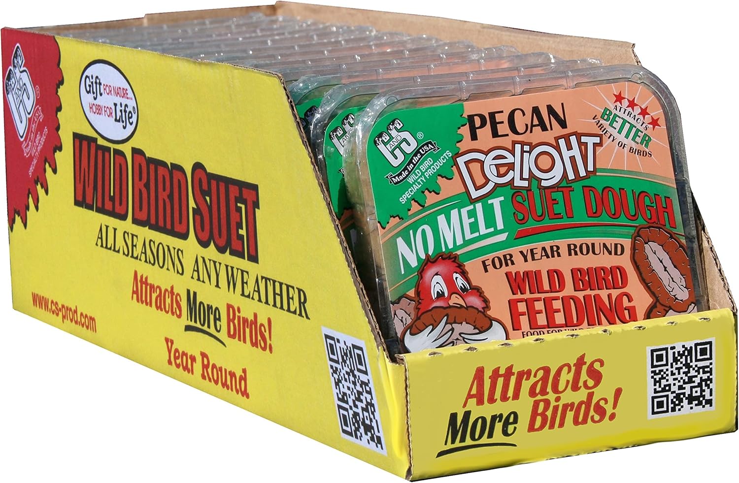 Peanut Delight is blending the same high quality beef fat with a base of corn meal and roasted peanuts. Other ingredients are added and mixed into a soft dough texture and then pressed into a cake form. C&S's process, unlike others who pour their dough products into a tray, creates the only true no melt suet product line in the world. This produces products unmatched in the industry for year round feeding in all types of weather. Attracts a better variety of birds. Green wire basket, steel roof & platform bottom. Our deluxe model makes feeding snak cakes a snap! Our Suet Baskets are a necessary key to your successful wild bird feeding. Suet Baskets are a necessary key to successful wild bird feeding. Their vinyl coated wire feeders come in a variety of sizes and styles, such as the new EZ Fill design. An empty basket means happy wild birds! These baskets are also designed to be easy on wild bird feet. The vinyl coating insures that feet will not freeze to the basket in winter, and will not roast in summer. Chances are we have a basket for your suet feeding needs. Hang in appropriate place and fill with suet or seed cake.