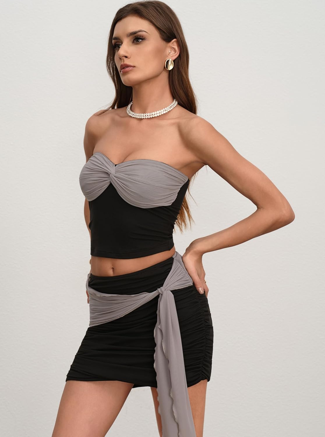 Women 2 Piece Skirt Sets Summer Strapless Crop Top Matching Bodycon Sexy Going Out Mini Club Dress Outfit Clothes Neckline:Two Piece Skirt Set for Women Summer Asymmetrical Mesh Strapless Tube Tops Mini Skirt Set Going Out Outfits Details: Women's Summer 2 Piece Mini Skirt Sets Floral Strapless Tube Tops and Bodycon Skirt Vacation Outfits / Women's 2 Piece Outfits Ruffle Trim Cami Crop Top and Low Rise Maxi Skirt Set / Two Piece Skirt Outfits for Women Sleeveless Tube Tops Bodycon Sexy Maxi Dress 2 Piece Summer Y2K Vacation Set / Summer Two Piece Outfits for Women Y2K Going Out Tie Ruched Tube Crop Tops Low Rise Pleated Mini Skort Skirt Sets Season: Summer / Fall / Spring Fabric: Fabric has some stretch