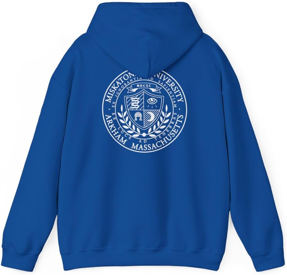 Show off your school spirit for the most haunted school this side of the cosmos! This unisex heavy blend hooded sweatshirt is relaxation itself. Made with a thick blend of cotton and polyester, it feels plush, soft and warm, a perfect choice for any cold day. In the front, the spacious kangaroo pocket adds daily practicality while the hood's drawstring is the same color as the base sweater for extra style points. .: 50% cotton, 50% polyester (fiber content may vary for different colors) .: Medium-heavy fabric (8.0 oz/yd² (271 g/m²)) .: Classic fit .: Tear-away label .: Runs true to size