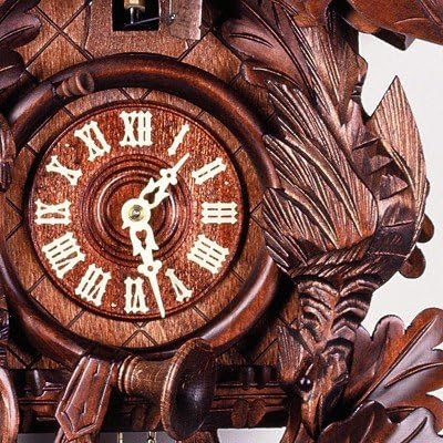 Colour: Walnut Executions: Classic Wooden dial, wooden hands, wooden bird, and night shut off 2 years product warranty The cuckoo calls every half hour once and the number of the hours every full hour. This cuckoo clock has an exclusive life-like wooden handpainted cuckoo. With certificate of authenticity from the Black Forest Clock Association (VdS). It has a mechanical extreme long-life rack strike movement. It allows turning the hands left and right without endangering the mechanics of the movement. The 8 day running time movement need to be wind up once a week, that means you pull on the chains until the weights are up. The size refers only to the clock, without pendulum and weights.
