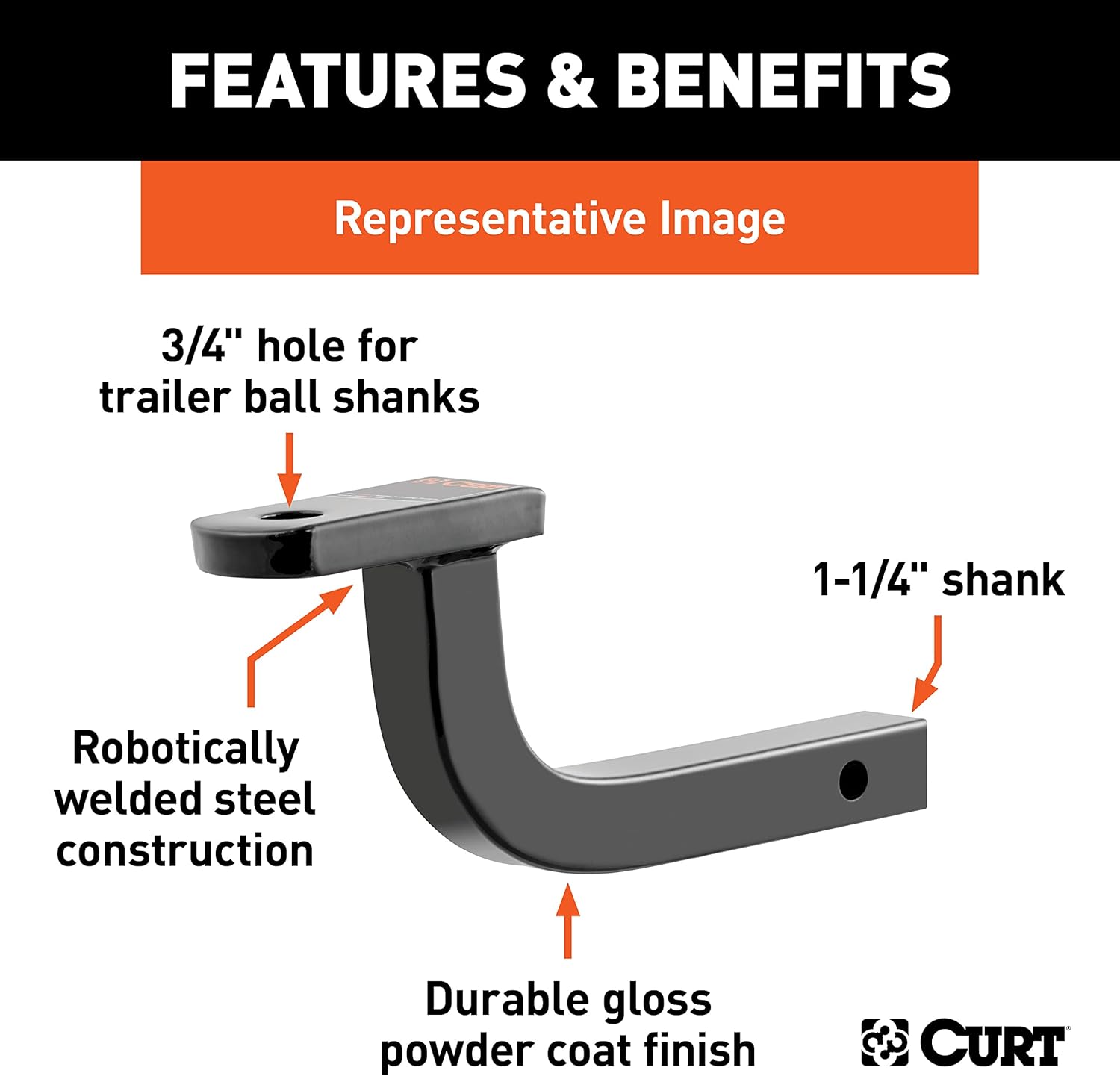 CURT class 2 ball mounts are designed to be fast, easy and reliable for your light-duty or standard-duty towing needs. We produce our class 2 ball mounts using state-of-the-art CNC machinery and robotic welding. This provides the accuracy and consistency in our ball mounts that we pride ourselves on and ensures that you receive the exact towing product you expect from an industry-leading manufacturer. Like our class 1 ball mounts, CURT class 2 ball mounts are all made with 1-1/4" x 1-1/4" shanks and have a 3/4" trailer ball hole. A CURT class 2 ball mount is an excellent choice for full-size sedans, minivans, crossover SUVs and other vehicles that commonly use a class 2 trailer hitch. They are ideal for towing small boat trailers and utility trailers, popup campers and some recreational vehicle trailers such as those used to haul dirt bikes, motorcycles and ATVs (NOTE: Never exceed the lowest weight capacity of any towing component; i.e. the vehicle, hitch, trailer, etc).This CURT class 2 ball mount has a gross trailer weight capacity of 3,500 lbs. and a tongue weight capacity of 350 lbs. It measures 11-1/4" long and has a rise of 3-1/8". To give our class 2 ball mounts the edge they need to go wherever the road takes you, we coat each one in a highly durable black powder coat that provides a long-lasting defense against rust, UV damage, scratching, scuffing and chipping.