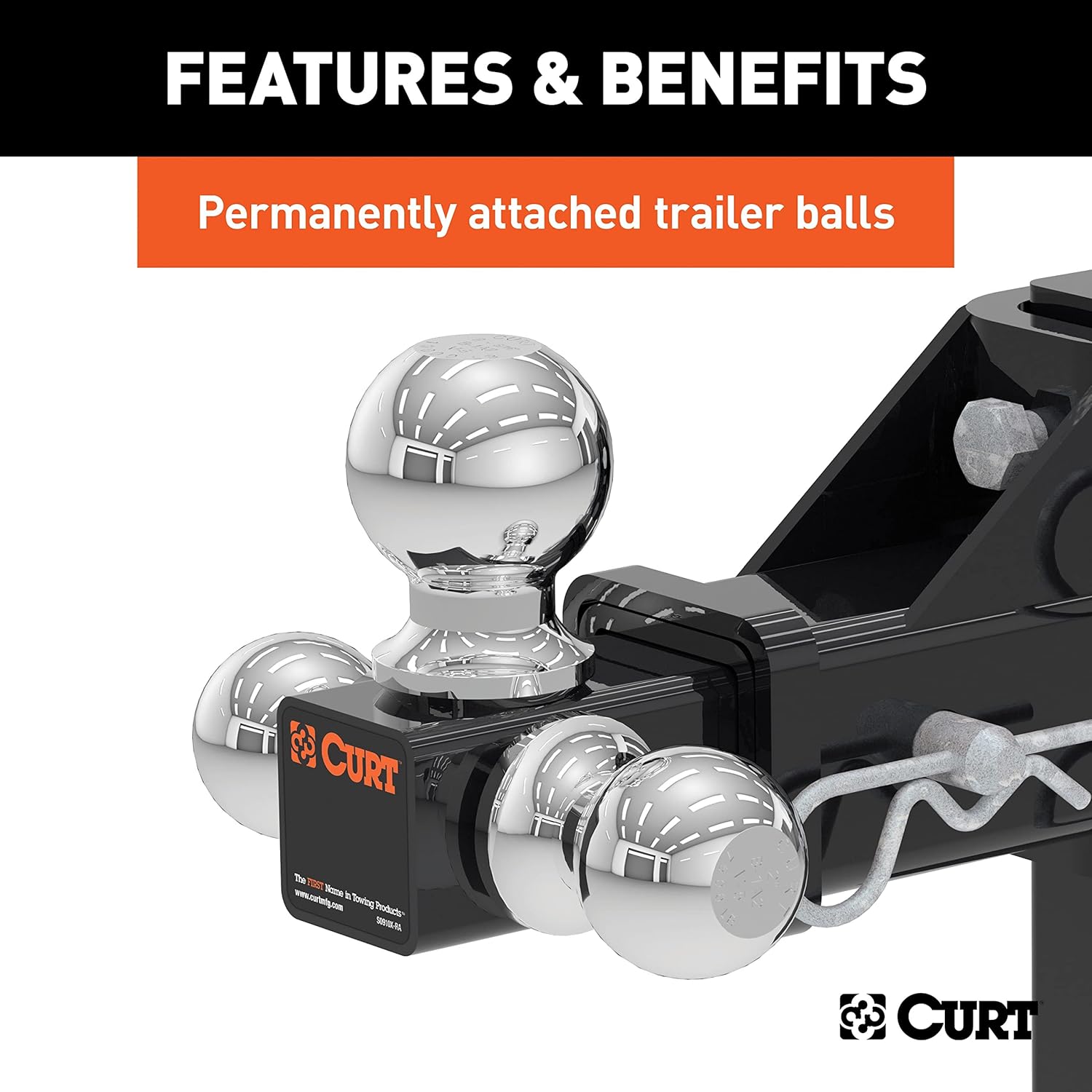 If you own multiple trailers or frequently tow a variety of loads, you know how much time and money are spent tailoring your towing system to each and every individual trailer. There is nothing more inconvenient than switching back and forth between a few different ball mounts and trying to remember which mount fits with which trailer. A CURT adjustable ball mount is your multipurpose towing solution. This CURT adjustable ball mount has a shank size of 2" x 2" and features three different trailer ball sizes to accommodate all standard coupler sizes: 1-7/8", 2" and 2-5/16". The 1-7/8" trailer ball offers a gross trailer weight capacity of 6,000 lbs. and a tongue weight capacity of 600 lbs. The 2" trailer ball has a GTW capacity of 7,500 lbs. and a TW capacity of 750 lbs., and the 2-5/16" ball offers 10,000 lbs. GTW and 1,000 lbs. TW. This allows you to easily tow a variety of trailers and to ensure that each one tows smoothly and securely. This tri-ball ball mount also features an adjustable shank assembly with multiple mounting holes for varying ball heights. Each trailer ball can be raised to a maximum of 5-3/4" rise or lowered to a maximum of 5-3/4" drop, allowing you to make your trailer completely level in any towing situation. It includes three 5/8" hitch pins for quick and secure installation, and the adjustable shank can also be used with our multipurpose ball mount attachment #45008 for even more versatility. All CURT adjustable ball mounts are made with sturdy steel construction and come with a durable powder coat finish for long-lasting rust, scratch and UV resistance.