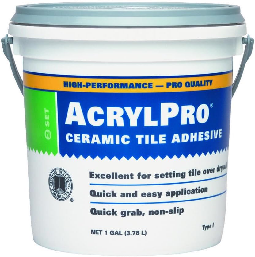 Product Description AcrylPro Ceramic Tile Adhesive is a high performance, professional formula adhesive with the high bond strength required for 8" x 8" (20 x 20 cm) ceramic floor tile installations. From the Manufacturer AcrylPro Ceramic Tile Adhesive is a high performance, professional formula adhesive with the high bond strength required for 8" x 8" (20 x 20 cm) ceramic floor tile installations.