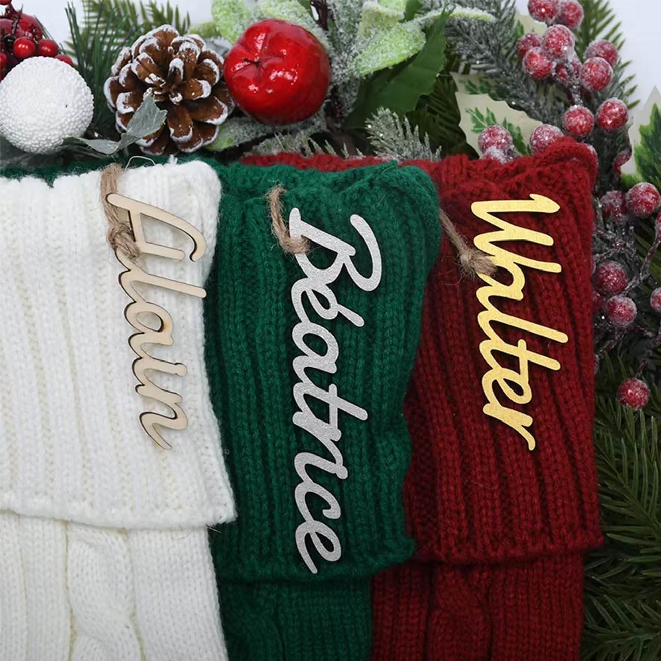 Material: Wood Size: 3.5-4.5CM (Height) 8-15CM (Weight) 4mm Thick Wood Color: Multiple Colors Packaging: Opp Bag, Good Protection Please note that there will be some burn marks on the back of the wood, which is normal and will not affect the use Elegant Personalization: Add a touch of sophistication to your dinner party with our personalized place cards. These small custom laser cut names are perfect for weddings, dinner parties, or any special occasion! Premium Quality: Our wooden name cards are made of high-quality materials and are durable. Each one is laser cut and carefully crafted for stunning results. Versatile Design: These wooden name place cards can be used to decorate your wedding reception, create personalized seating arrangements, or make gorgeous Christmas stocking tags. Endless Possibilities: Our laser cut wooden Christmas stocking names can be used for a variety of creative projects. They make great wedding place cards, table decorations, or even custom signs. Unique Gift Idea: Surprise your friends and loved ones with personalized wooden name seats. These custom name tags are the perfect party favor or thoughtful gift for any occasion.