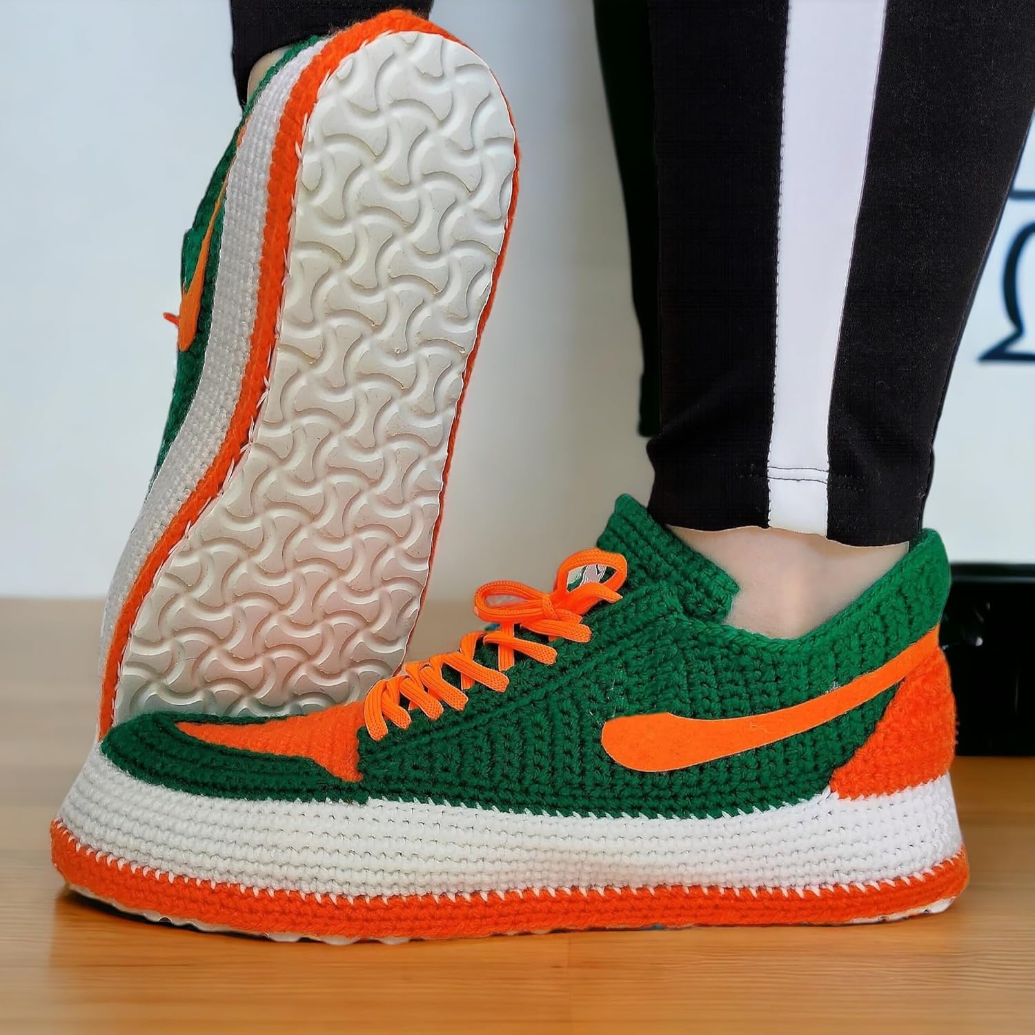 Show off your team pride and streetwear style with our Handmade Miami-Inspired Low-Top Crochet Sneaker Slippers, crafted for true Hypebeast and Sneakerhead fans. Designed with breathable cotton and soft wool yarn, these unisex slippers combine retro basketball aesthetics with modern comfort. Perfect for lounging, watching the game, or gifting a sports enthusiast, these slippers deliver cozy warmth and a standout look. The durable EVA rubber sole ensures non-slip safety and long-lasting wear, while the hand-crocheted construction provides a premium artisanal finish. Available in adult unisex sizes (US 5–13), these crochet sneakers are ideal for both men and women who value handmade quality, comfort, and Miami-inspired flair.