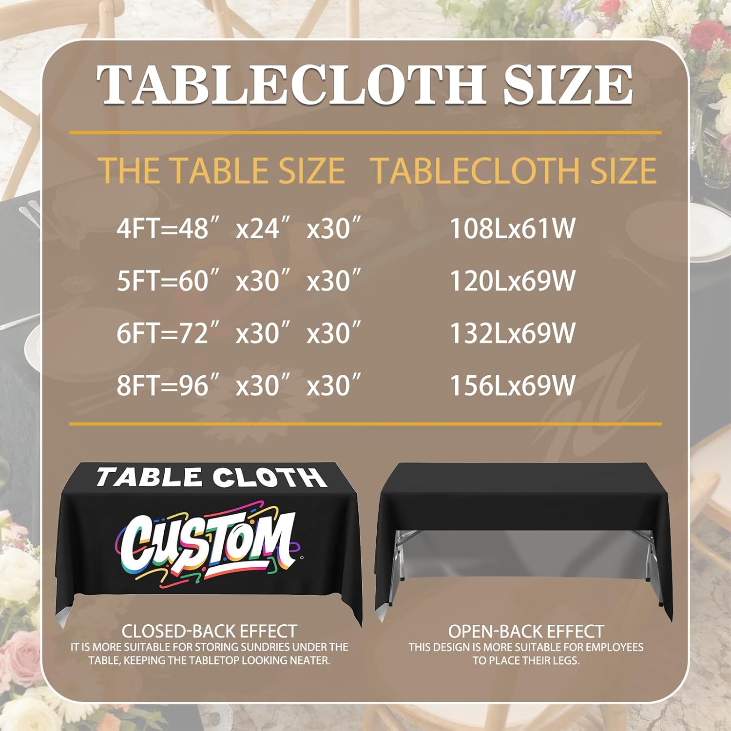 | Size | 108" x 61" (custom tablecloth with business logo) |