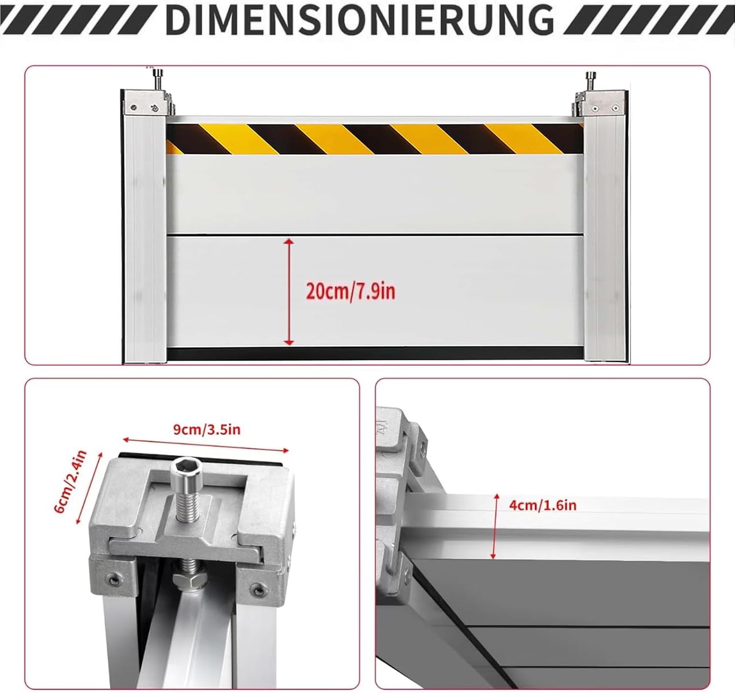 Constructed from durable aluminum alloy, our flood barrier features a robust baffle thickness of 4cm (1.5 inches) and a panel height of 20cm (7.9 inches), ensuring reliable performance in various conditions.Key Features:- **Effective Flood Protection**: Designed to block water and safeguard your home from flooding.- **Durable Material**: Made from high-quality aluminum alloy for strength and longevity.- **Quick Setup**: Easily erected within minutes, providing peace of mind when you need it most.- **Versatile Application**: Suitable for homes, basements, garages, driveways, and more.- **Customizable Options**: Tailor the solution to meet your specific needs.Package Includes:1 x Aluminum Flood BarrierPlease note: Due to lighting and display differences, actual product colors may vary slightly. Manual measurements may have a tolerance of 1-3cm.