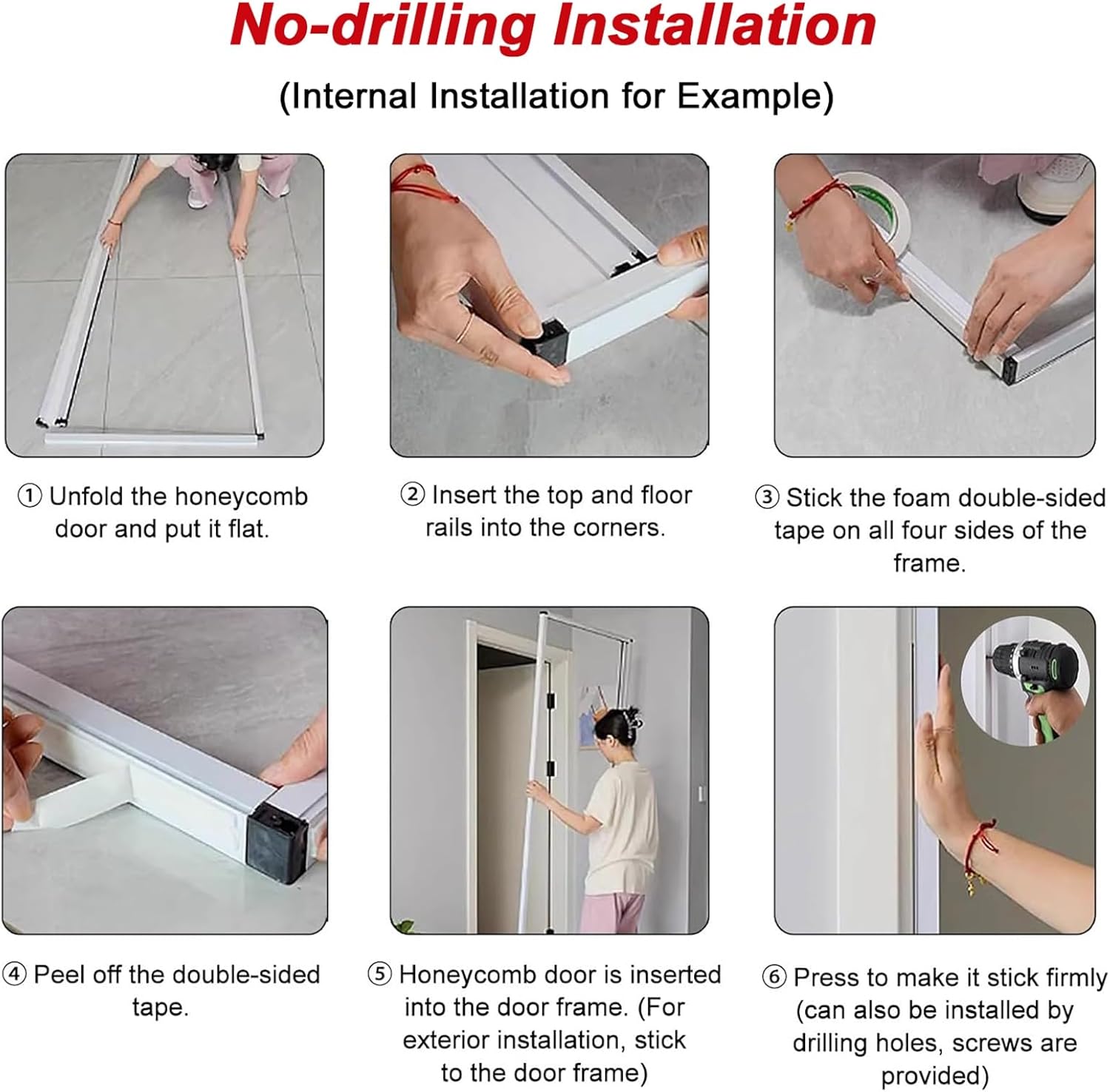 Metal Frame Indoors Security Patio Door:**Description:** Transform your living space with our innovative folding door, designed to occupy just 10% of the space of traditional doors. This space-saving solution enhances room functionality, making it ideal for various settings such as closets, bedrooms, doorways, showers, and kitchens. With features like hidden folding, super magnetic suction, and waterproof materials, this door combines practicality with style. **Specifications:** - **Material:** Durable Aluminum Frame, Non-woven Curtain - **Length:** Customizable to fit your needs - **Height:** Customizable for perfect installation - **Door Frame Width:** 2.5 cm (1 in) - **Door Frame Thickness:** 2.5 cm (1 in) - **Floor Tail Height:** 1 cm (0.39 in) **Customization:** To get the perfect fit, simply measure the height and width of your door frame (minimum dimensions apply) and specify the installation direction for the door handle (left or right). **Features:** - Provides privacy with a blocked view and a lockable mechanism - Allows for smooth operation without sticking or jamming - Crafted with durable aluminum panels that resist warping, cracking, and fading - Ideal replacement for standard doors, maximizing your available space - Contemporary design that enhances the aesthetics of any room - Helps reduce noise, control temperature, and block fumes, light, and pets **What’s Included?** 1 x Pull Down Honeycomb Folding Door **Warm Tips:** 1. Manual measurements may have a margin of error of 1-3 cm; your understanding is appreciated. 2. A slight odor is normal upon unboxing and will dissipate within two to three days. Elevate your home experience with our folding door that melds functionality and modern design seamlessly.