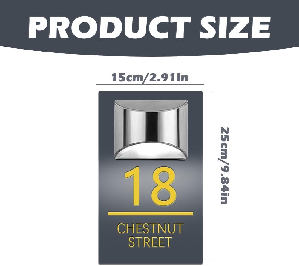 Size: 25x15cm/9.84x5.91 inchesMaterial: AcrylicFont color: Gold, silverFont: Cannot be selectedAcrylic thickness: 5mm/0.197 inchesSexualize your house number and street name.Solar lamp function, automatic lighting at night, closed during the day, charging with solar energy.Customized content Remarks:Content 1: House numberContent 2: Street name (becomes 2 lines if the street name is too long)