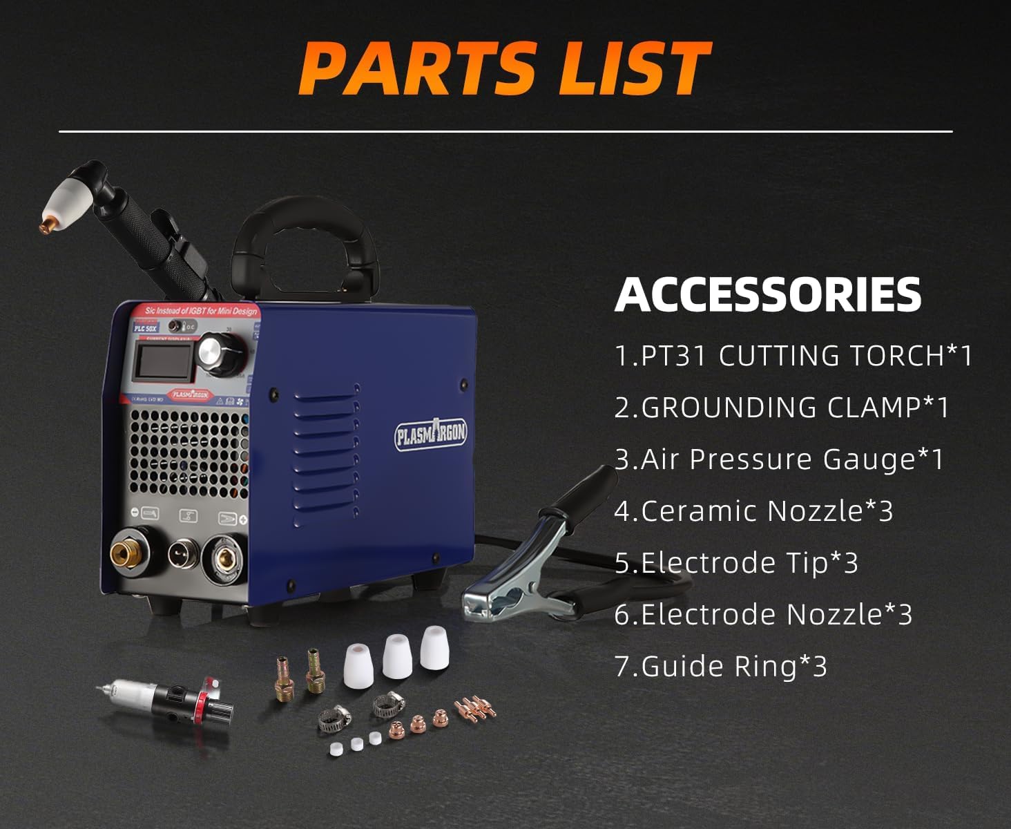 FEATURE1.The smallest 50A plasma cutter. Only 5.4KG!2.Durable LED readout. Better adapted to high-temperature cutting environments.3.Advanced IGBT technology. Higher performance, lower energy consumption.4.Physical air pressure gauge. More accurate measurement and greater durability in use.5.Clean Cut:3/10''@110V,1/2''@220V Max Cut:1/2''@110V,2/3''@220V