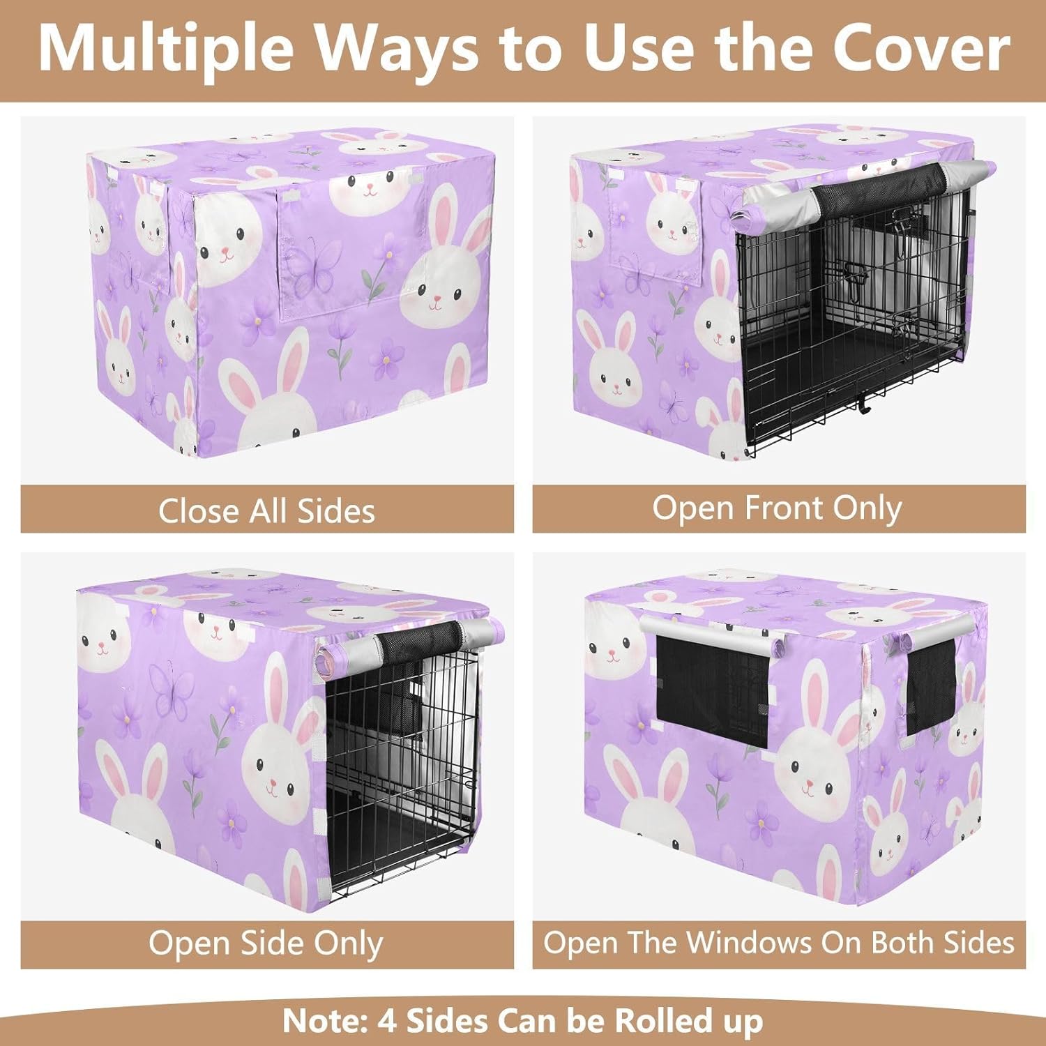 Weather-Resistant Dog Crate Cover is made of 600D silver-coated oxford fabric that provides exceptional protection against wind, rain, and sunlight. This material prevents your pet from scratching the crate and blocks most direct sunlight, ensuring a safe and comfortable space.Simple and Secure Setup features an easy fastening system, making it effortless to install without the need for tools. This indoor dog crate cover fits securely onto your dog crate, ensuring it stays in place and provides protection at all times.Ventilation for Comfort with mesh windows on all sides, our dog kennel cover ensures optimal airflow, keeping your pet cool and comfortable even during long periods inside the crate. The mesh design also provides privacy and security for your pet.Wind-Resistant and Stable with four adjustable tie-down straps at the bottom, this water-resistant dog crate cover stays securely in place, preventing it from being blown away by the wind or removed unintentionally. This feature ensures that your pet’s crate remains stable and protected.Versatile Use Ideal for both indoor and outdoor settings, this foldable crate cover provides the protection your pet needs in various environments, whether at home or on the go. The compact design makes it easy to store and travel with.