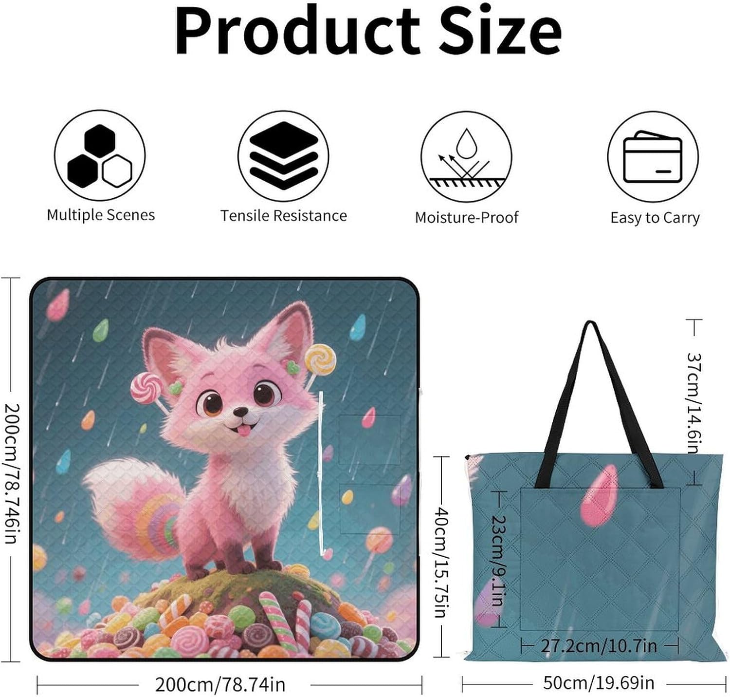 Elevate Your Outdoor Experience with the Versatile Picnic BlanketCollapsible Picnic Mat Picnic Essentials Convertible Tote Bag Portable Rug for Picnics Beach Essentials Camping Pad Cute Picnic Blanket Bag Foldable Travel Mat Large Family Picnic Blanket Outdoor Picnic MatsSuperior Protection and ComfortForget worrying about wet grass or prickly sand. Our blanket features a smart 3-layer construction. The top layer is soft to the touch, while the middle padding provides just the right amount of cushioning against hard ground. The bottom layer, made from durable 210D Oxford cloth, is completely waterproof and acts as a barrier against moisture and dirt, ensuring you stay clean and dry.Designed for the Modern ExplorerWe understand that space is precious when you're on the move. That's why our blanket features an ingenious foldable design. In seconds, it transforms from a full-size mat into a compact carry bag with a handle. This makes it incredibly easy to transport and store. But the innovation doesn't stop there; the carry bag itself is designed to be used as a sturdy shopping tote, making this blanket a true 2-in-1 essential for eco-conscious shoppers.Choose Your Perfect Size:59 x 40 inches / 150 x 100cm: Ideal for couples or solo use.59 x 59 inches / 150 x 150cm: Perfect for a small family or small group of friends.78.8 x 78.8 inches / 200 x 200cm: Our large size, perfect for family gatherings and group outings.Whether you're planning a beach vacation, a camping trip, a hike, or a simple day at the park, this cute picnic blanket is your reliable partner for comfort and convenience. Pack it, carry it, and enjoy the outdoors without compromise.