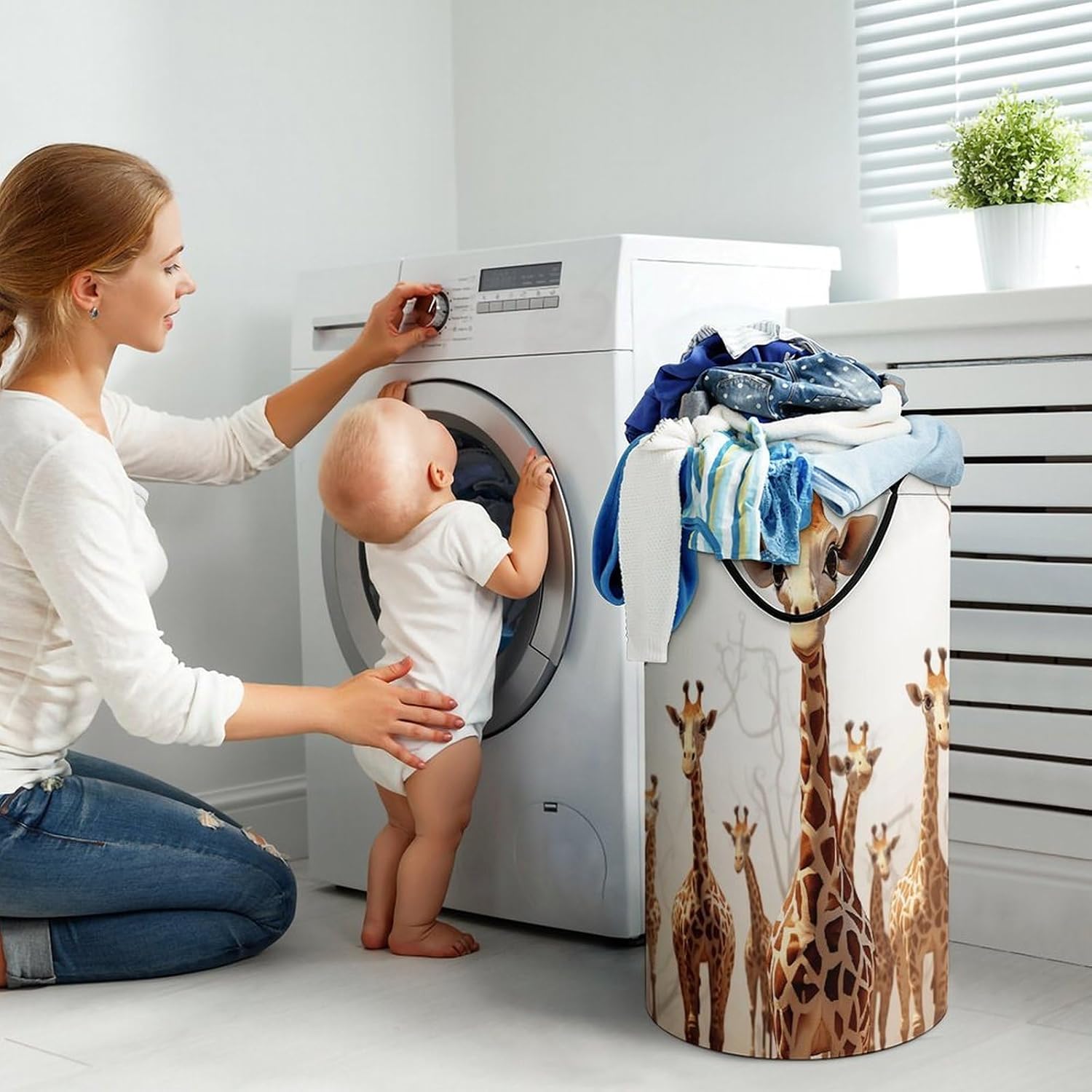 The pattern of the Cute Cartoon Funny Giraffes hamper is printed with exquisite patterns, which makes the product more attractive.Chic design allows it to be used in the living room to hold throw blanket, pillows, and reading materials, as well as in the bathroom for towels, or as a laundry hamper.The laundry hamper adopted collapsible design, equipped with handles. It is lightweight and portable for using, storing, and moving conveniently.Cute Cartoon Funny Giraffes Clothes hamper is suitable to store dirty clothes washing, place in the room to store toys, and other household goods, keep the house clean and tidy. Perfect laundry hamper for home, office, closet organizer, bedroom, bathroom, college dorm, etc.Gets out of your way when you need it to. This storage basket or laundry hamper is a good gift, which not only meets everyday storage needs but also carries deep care and love, a perfect way to turn thoughtfulness into warmth.