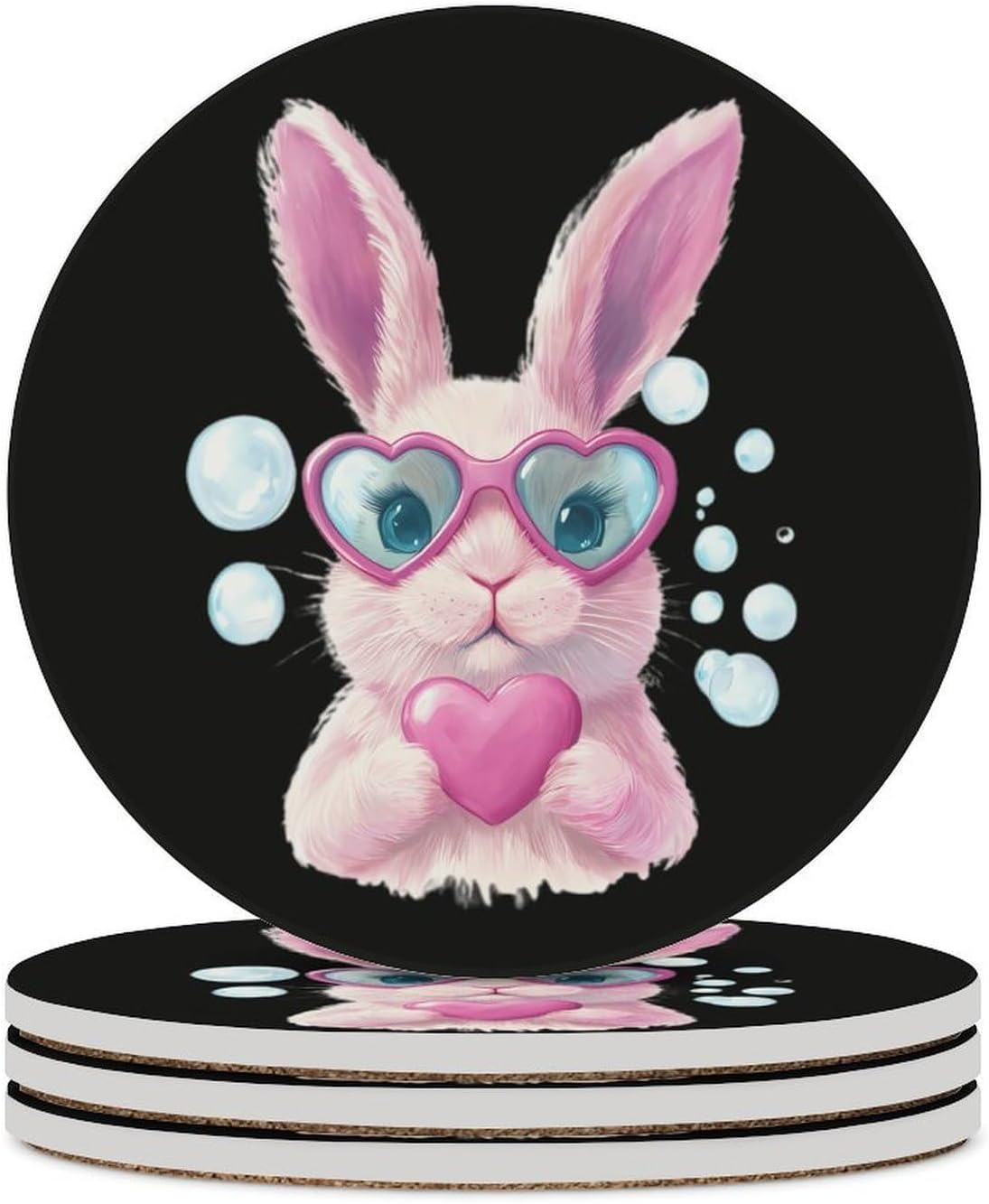 Cute Printed Round Drinks Absorbent Ceramic Coaster with Cork Base Suitable for Kinds of Mugs, Cups, Prevent Tabletop Wear And Scratches, and is Easy to Clean