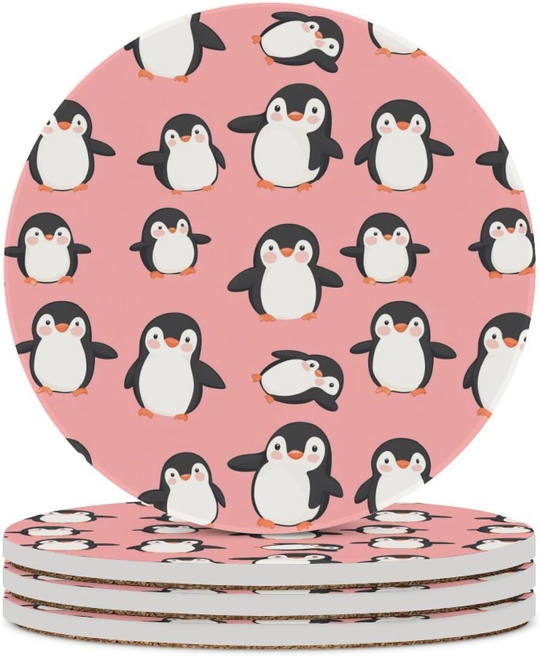 Cute Printed Round Drinks Absorbent Ceramic Coaster with Cork Base Suitable for Kinds of Mugs, Cups, Prevent Tabletop Wear And Scratches, and is Easy to Clean
