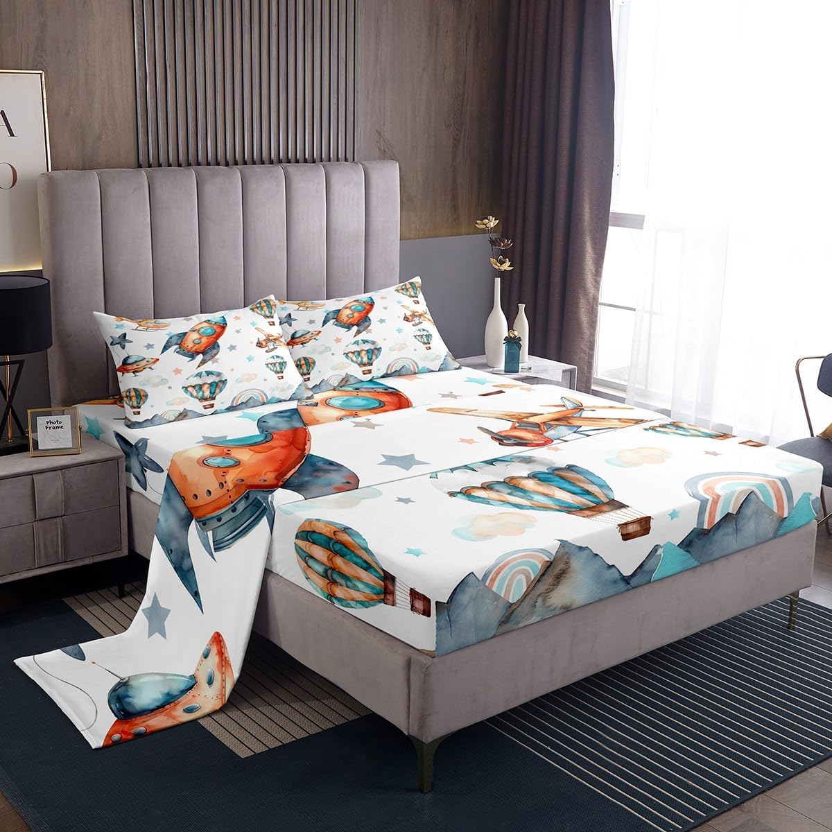 Package Include:1 fitted sheet,1 flat sheet, 1 Pillowcase or 2 Pillowcases;Our high quality designs match any decor; High-end Fitted Sheet Set Pattern Bedding Set, simply decorating your rooms any time you want, bringing you fresh feel for year round use; Durable: Made from 100% polyester microfiber, the sheet set offers long-lasting strength, anatural resistance to shrinking and a noticeably soft hand feel; Size Information: Twin size :3pcs Fitted Sheet set, 1 Fitted Sheet 39"W x 75"L x 16"H,99 x 190 x 40 cm , 1 Flat Sheet 66"W x 96"L,170x245 cm , 1 pillowcase 20" x 30",51x75 cm ; Full size :4pcs Fitted Sheet set, 1 Fitted Sheet 54"W x 75"L x 16"H,137 x 191x 40 cm , 1 Flat Sheet 81"W x 96"L,205x245 cm , 2 pillowcase 20" x 30",51 x 75 cm ; Queen size :4pcs Fitted Sheet set, 1 Fitted Sheet 60"W x 80"L x 16"H,152 x 203x 40 cm , 1 Flat Sheet 90"W x 102"L,230x260 cm , 2 pillowcase 20" x 30",51 x 75 cm ; King size ,4pcs Fitted Sheet set : 78"W x 80"L x 16"H,198 x 203x 40 cm , 1 Flat Sheet 90"W x 106"L,229x270 cm , 2 pillowcase 20" x 36",50 x 90 cm ;Personalize your bedroom:Beautiful design and colorful print, makes your bedroom unique and brings you a wonderful dream;Washing instructionsMachine wash separately in cold water,hang dry, do not bleach; Occasion:The soft Fitted Sheet bedding sets designed for Children ,Adult, Men, Women, Teens; This Fitted Sheet set is also suitable for full seasons, Spring, Summer, Autumn and Winter;After Service: We are dedicated to ensuring you have an excellent experience, from the moment you place your order until you sleep on your new bedding the first time;If you have any dissatisfaction with the product, we will provide a solution as soon as possible;