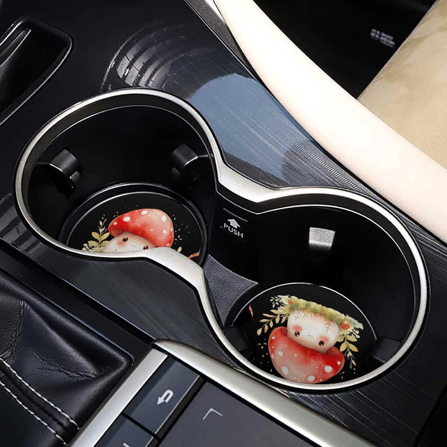 car coasters,coasters set of 6,coasters set of 4,car cup coasters,cup holder coasters for car Round Wood Car Cup Holder Coaster 2.56 Inches Cute Absorbent for Drinks Coaster Auto Interior Decorative Accessories with Funny Pattern Design