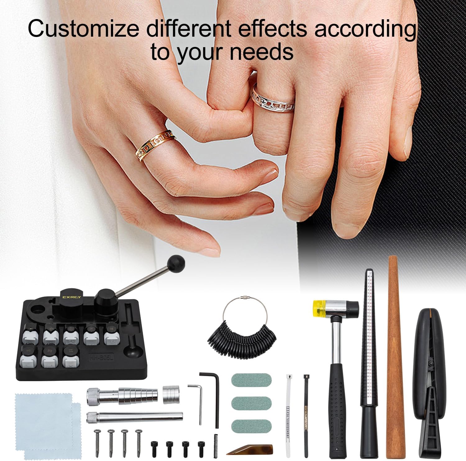 | Included Components | ring sizer, finger sizer, polishing rods, rubber jewelry hammer, ring mandrel, metal dies (12, 14, 16, 18, 20, 22mm, 60-degree, 90-degree), nylon dies, instruction booklet |