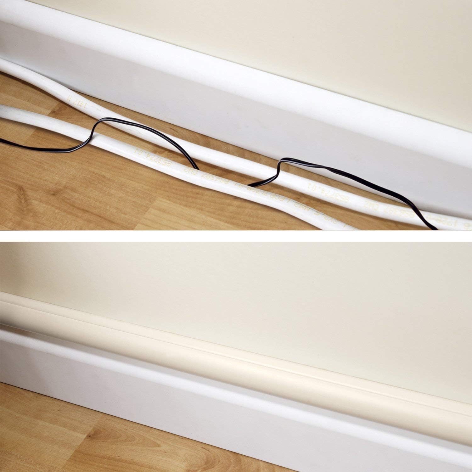 D-Line Medium (1.18x0.59in) Cable Raceway Bundle - Beige D-Line Medium Cable Raceway is great for covering cables on open walls i.e. hiding cables from wall mounted TVs or to cover cords above baseboards, with the profile scaling to appear as the natural top section of the baseboard. Half round profile of D-Line Raceways subtly blend with décor... providing a neat solution to cover cables on walls. Cable Hider lengths are also fully paintable for the perfect finish, simply key the surface with a fine sandpaper & apply two coats of paint. One-piece design & patented click lock lid of D-Line Raceway lengths enable easy handling and installation... no prior DIY or electrical know-how is required to install. All D-Line Cable Raceway lengths are supplied with strong self-adhesive backing for easy peel & stick installation (take care when positioning lengths as adhesive backing does create a strong bond.) Lengths can be drilled & screw-fixed for added stability. Clip-Over Accessories have rear grip tabs which fit securely between the gap left from adhesive backing, design forgives any imprecise cuts or measurements. Smooth-Fit Accessories internal shoulders fit securely under, providing a smooth flush finish. 10 Accessories included in bundle (use raceway accessories to cover cords around a variety of popular angles) Each Medium Cable Raceway bundle includes: 2x 1.18" (W) x 0.59" (H) x 39" Lengths (Beige) - 6.56ft Total Coverage 1x Clip-Over Flat Bends - change direction by 90° on flat surfaces 2x Clip-Over Internal Bends - join lengths around 90° inside corners 2x Clip-Over External Bends - join lengths around 90° outside corners 1x Clip-Over Equal Tees - join 3 lengths of the same profile 2x Smooth-Fit Couplers - join 2x lengths of the same profile on flat surfaces