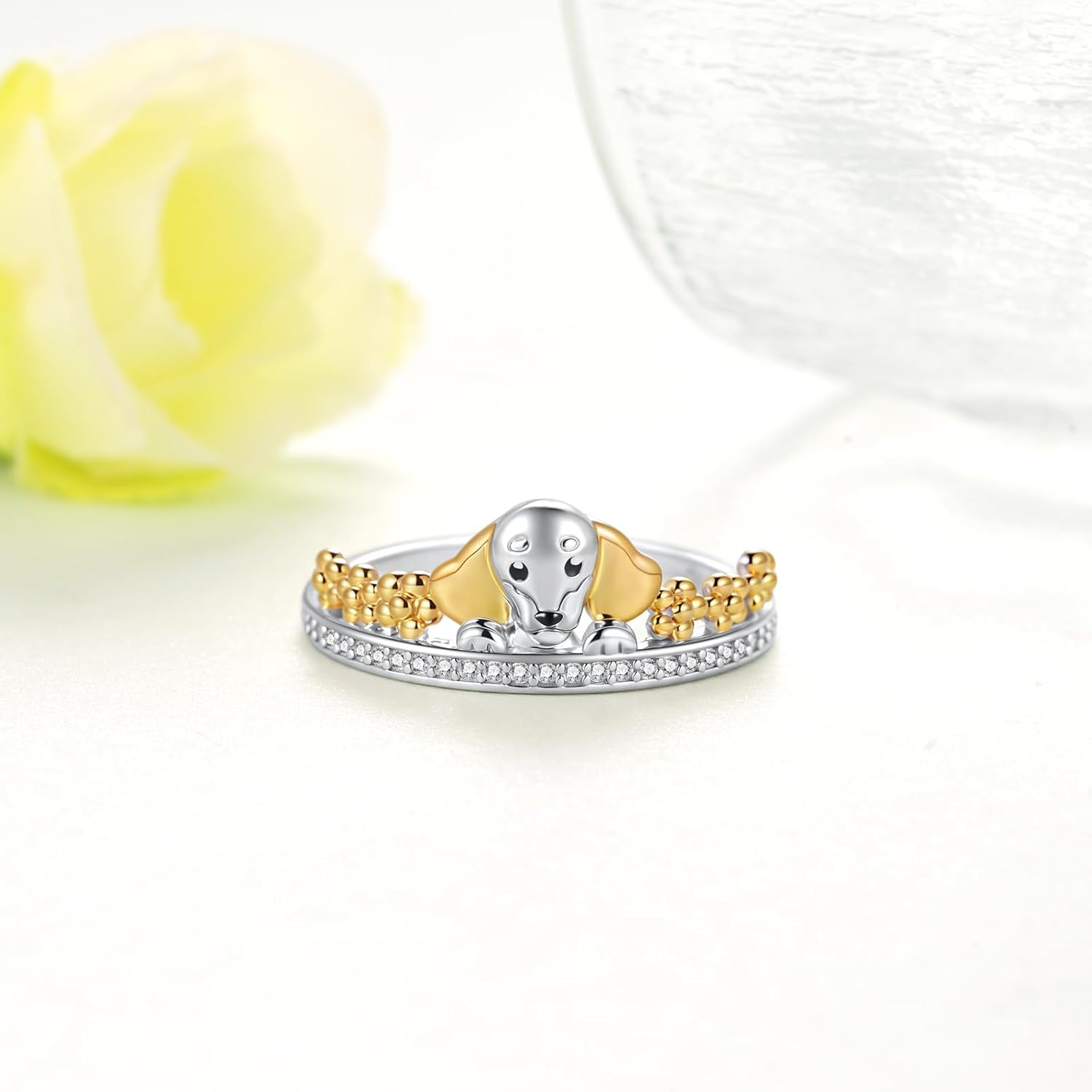 Dachshund Ring for Women 925 Sterling Silver Weiner Dog Rings Animal Puppy Dog Jewelry Dachshund Jewelry Gifts for Women On Mother's Day Thanksgiving Day Christmas Halloween Valentine's Day
