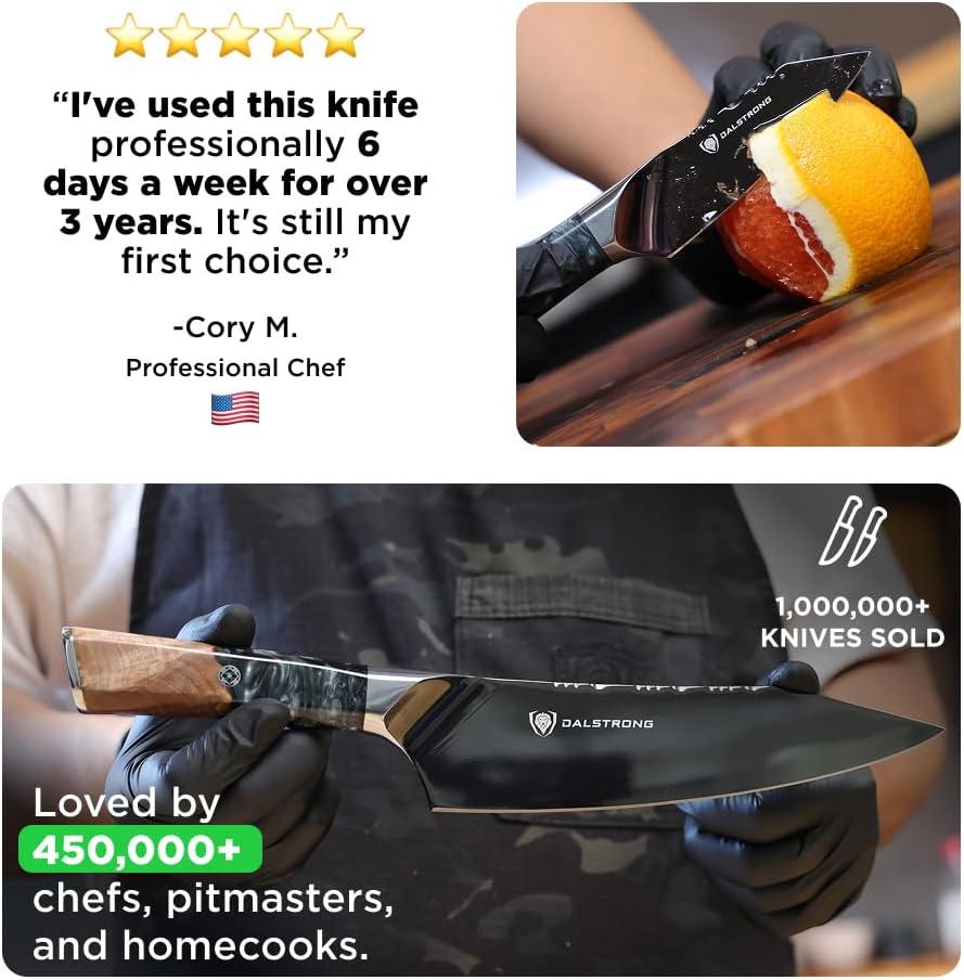 The two blades every kitchen needs, inspired by Viking legend, upgraded with Titanium-Nitride coated blades. The 8" Chef Knife powers through chopping, slicing, and dicing with Viking boldness, while the 3.5" Paring Knife handles precision work like peeling, trimming, and detail cuts. Together, they cover everything from big prep to fine finishes.