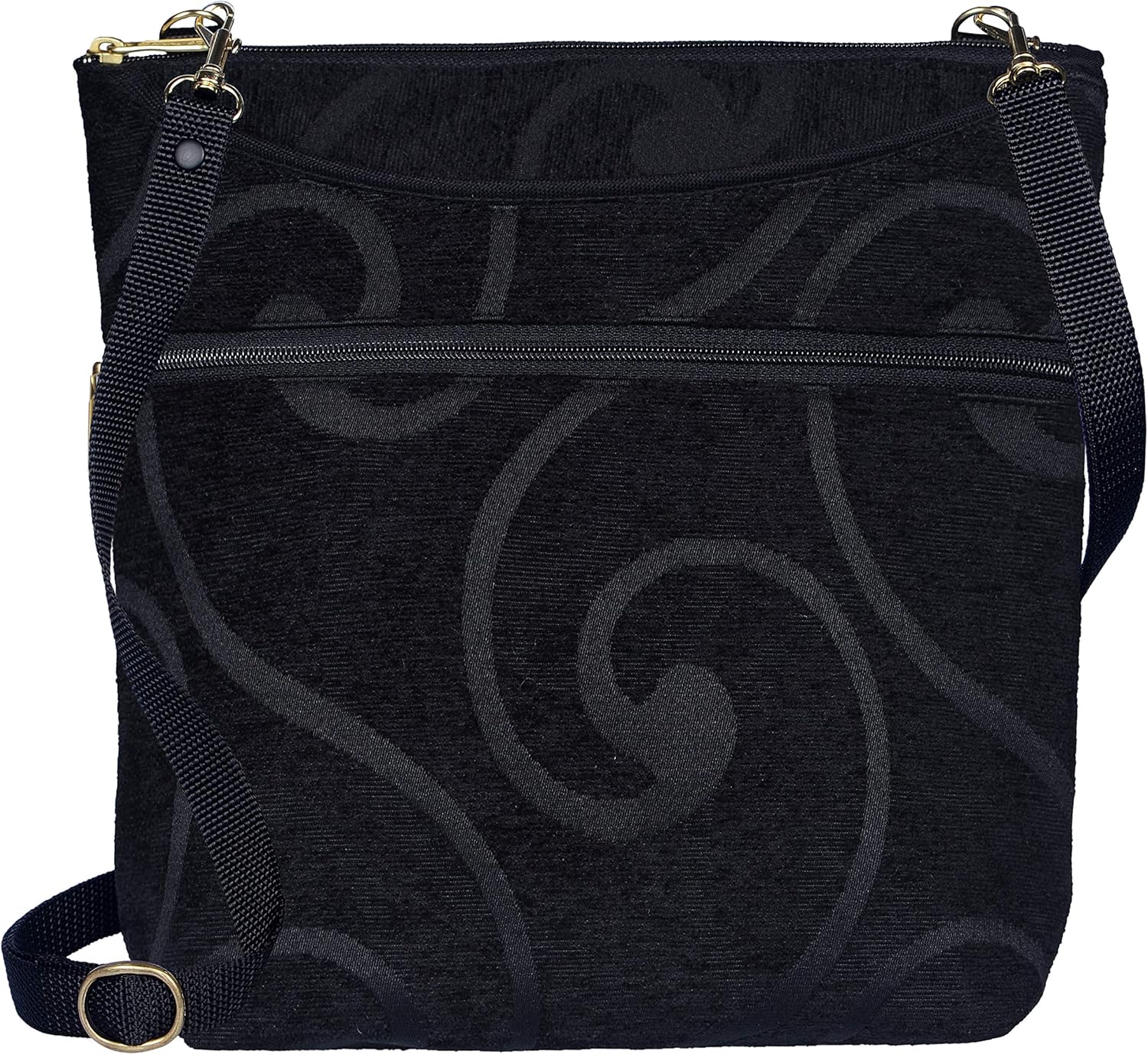 Hand Cut Tapestry Bags, Proudly Made in the USADanny K. handmade women's handbags are proudly made in the USA from gorgeous, hand cut tapestry fabrics and water-resistant nylon lining. The fabric in every bag is hand cut to highlight the beauty and design of the tapestry. Our medium-sized Maggie Purse is lightweight and roomy, measuring 11" wide x 10.5" high x 3" deep. Stylish and comfortable, with a durable nylon strap that adjusts from 30” to 56” so you can wear your Maggie Purse as a Shoulder Tote or a trendy Crossbody Bag.The top zip closure compartment is large enough to fit an iPad! An inside zipper pocket can hold your keys and valuables, a convenient open front pocket and large zipper pockets on the front and back make a perfect spot for your cell phone.