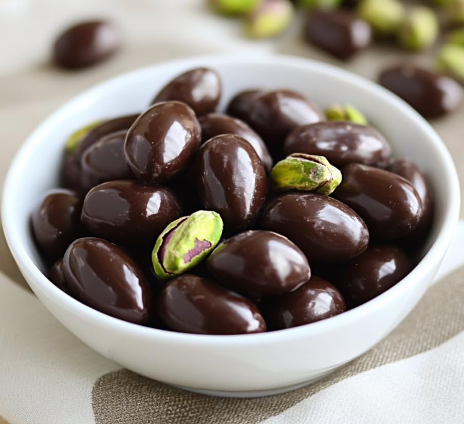 Indulge in luxurious flavor with Premium Dark Chocolate Pistachios. Each roasted pistachio is generously coated in smooth, velvety dark chocolate for a rich, satisfying experience. The naturally nutty and earthy flavor of pistachios pairs beautifully with the bold sweetness of dark chocolate, creating a perfect balance of sweet and salty in every bite. Made with real dark chocolate and premium-quality pistachios, these treats offer freshness, crunch, and indulgent taste you can savor anytime. These dark chocolate pistachios bring everyday snacking to a new level of indulgence. Enjoy them as an energizing pick-me-up, a decadent dessert topping, or an elegant addition to charcuterie boards, party spreads, and gift baskets. Their versatility makes them ideal for both casual snacking and special occasions, offering a touch of sophistication to any moment. Packaged in a convenient resealable bag, these pistachios stay fresh and ready to enjoy whenever the craving strikes. The bite-sized pieces make portioning simple, whether you’re treating yourself or sharing with friends and family. With their long shelf life and easy storage, these dark chocolate pistachios are the perfect balance of convenience, freshness, and premium indulgence.