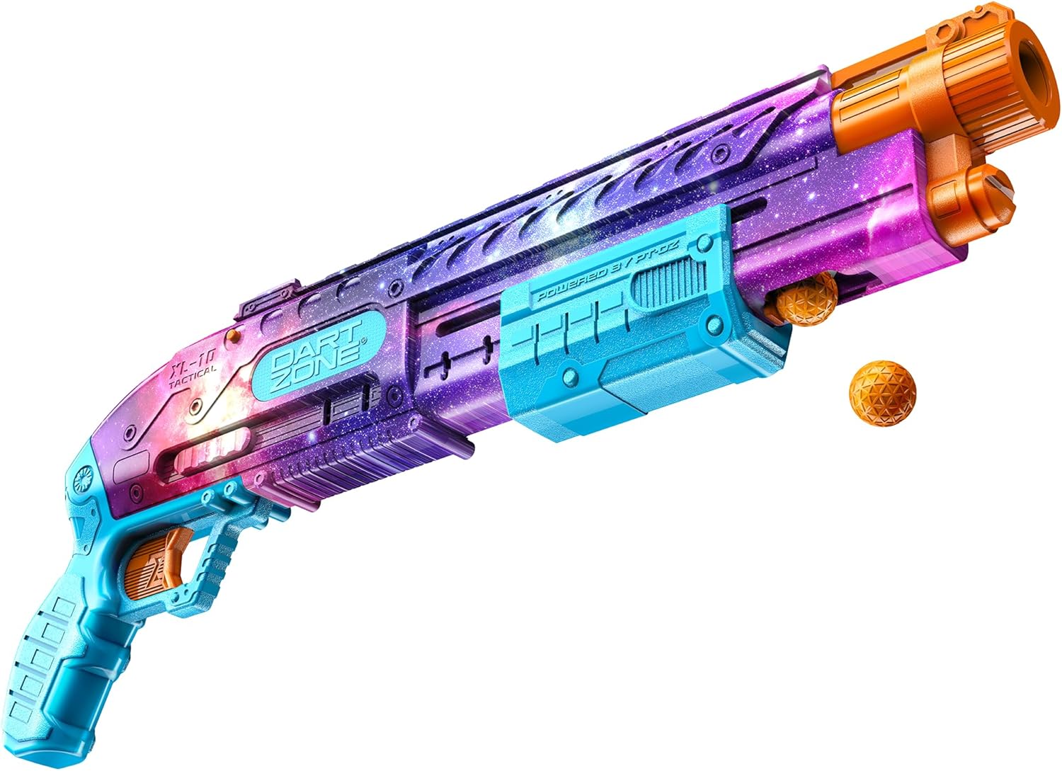 Let the games begin with the Dart Zone Liberator Ball Blaster! This set includes the gear teens need to kick their next battle royal up a notch. The blaster is equipped with an integrated 10-round magazine that allows players to shoot with precision up to 100 feet per second. Teens can break it out for a game at the park, in the backyard or anywhere around the house with the colorful Hypercolor deco. They'll feel cool and confident with the Liberator Spring-Powered Pump Action Ball Blaster at their side. The Liberator Ball Blaster measures 7.5" H x 20.5" L x 2" D and includes 10 Tactical Strike rounds are compatible with all Tactical Strike ball blasters & most standard Nerf Rival Blasters. Recommended for Ages 14+.