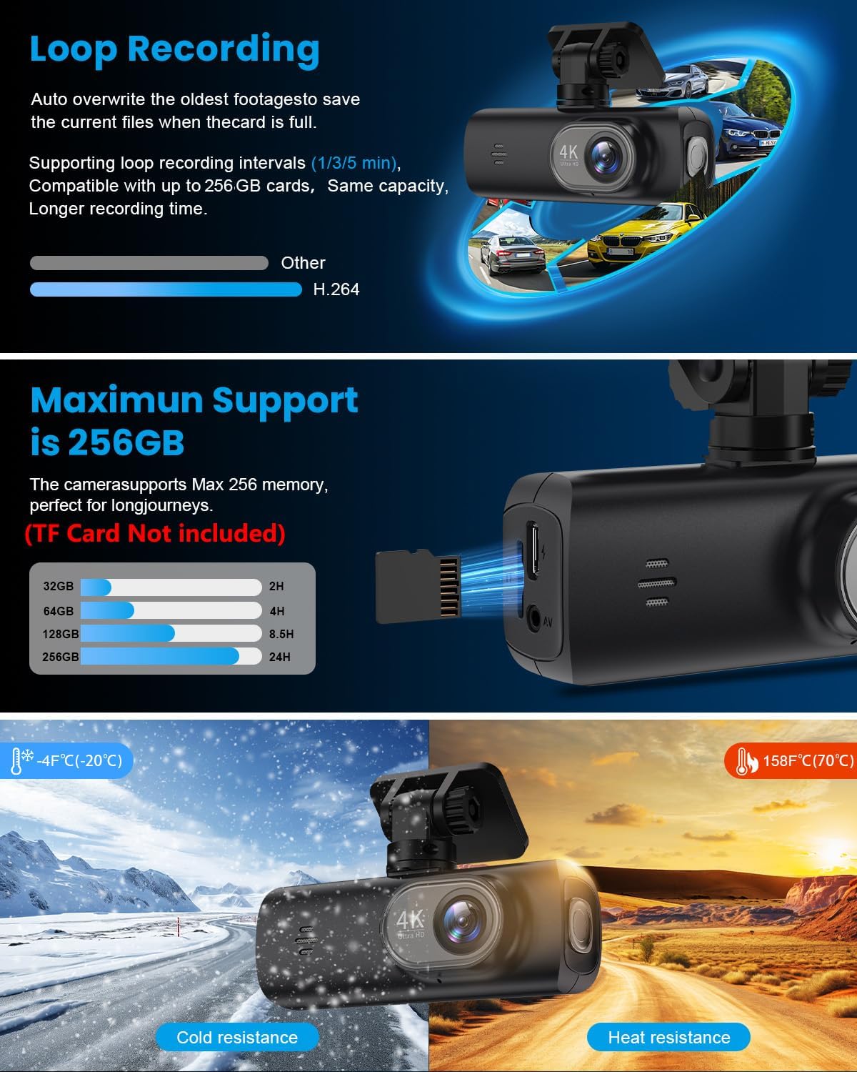 | Other Special Features of the Product | Built WiFi & App Control, Compact Design, Loop Recording & G-Sensor, Night Vision, Parking Monitor |