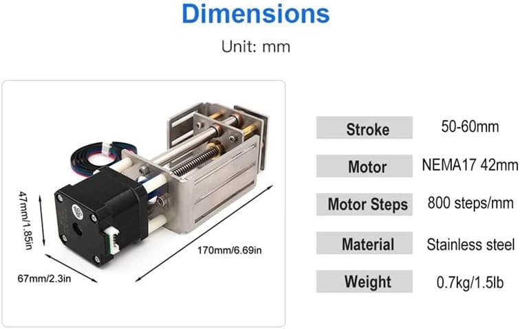 High-quality metal material, beautiful appearance and reasonable design.Mounting holes are well-designed, adjustable, and easy to install on other devices.Up and down position adjustment.M3 screws fixation, can also be fixed 755 motor seat or mounted with pen or other equipment.Wire Instruction:Black--A+,Green--A-,Blue--B+,Red--B-Colour:SilverMaterial:metalSize:150mm /50-60mmPackage includes:1 x MotorOnly the above package content, other products are not included.Note: Light shooting and different displays may cause the color of the item in the picture a little different from the real thing. The measurement allowed error is +/- 1-3cm.Item specifics:Origin: CN(Origin)Certification: NONECertification: NONE